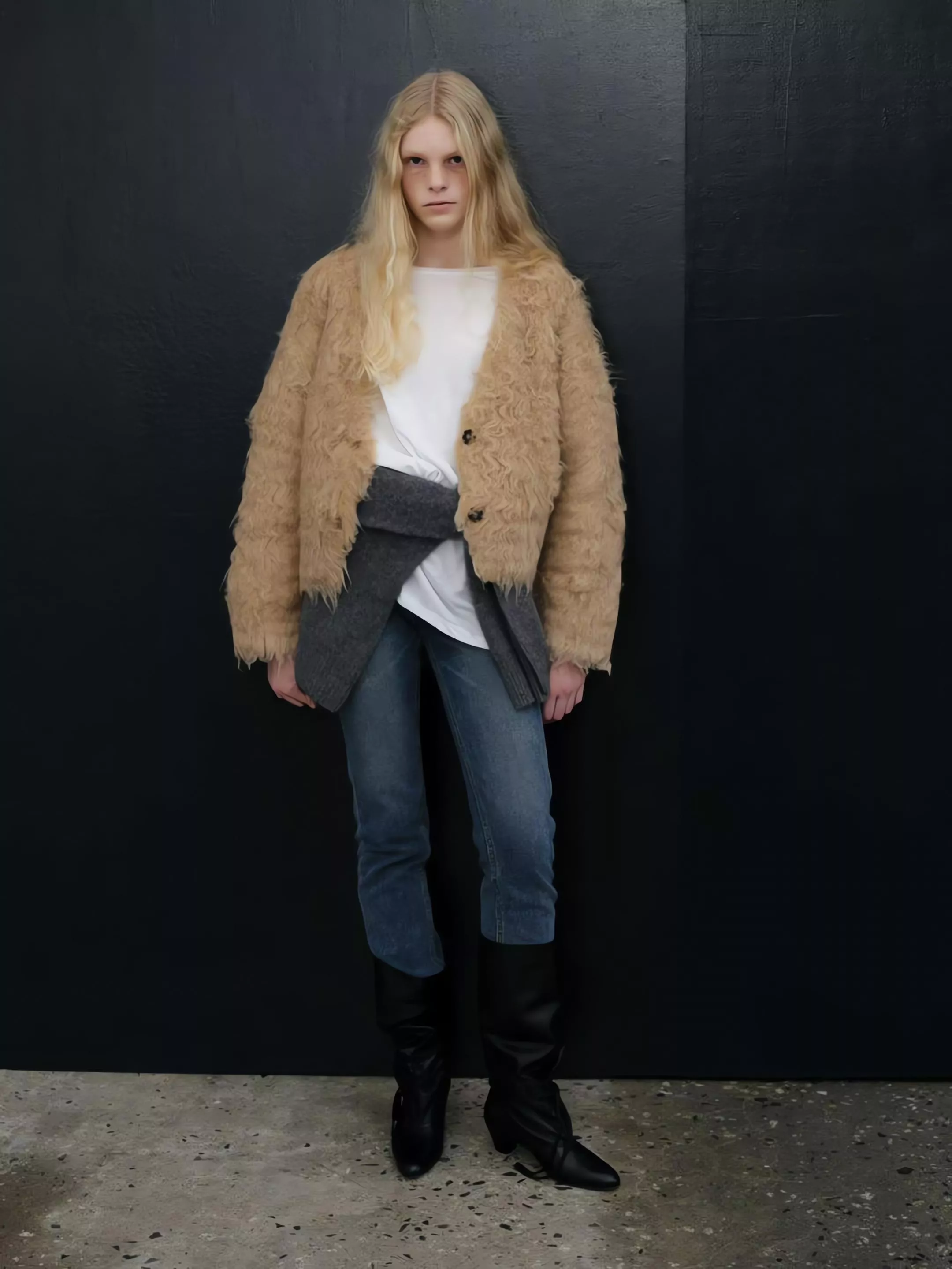 因刷毛工藝而成的自然毛感,在初期著用時可能有些微掉毛屬正常現象。