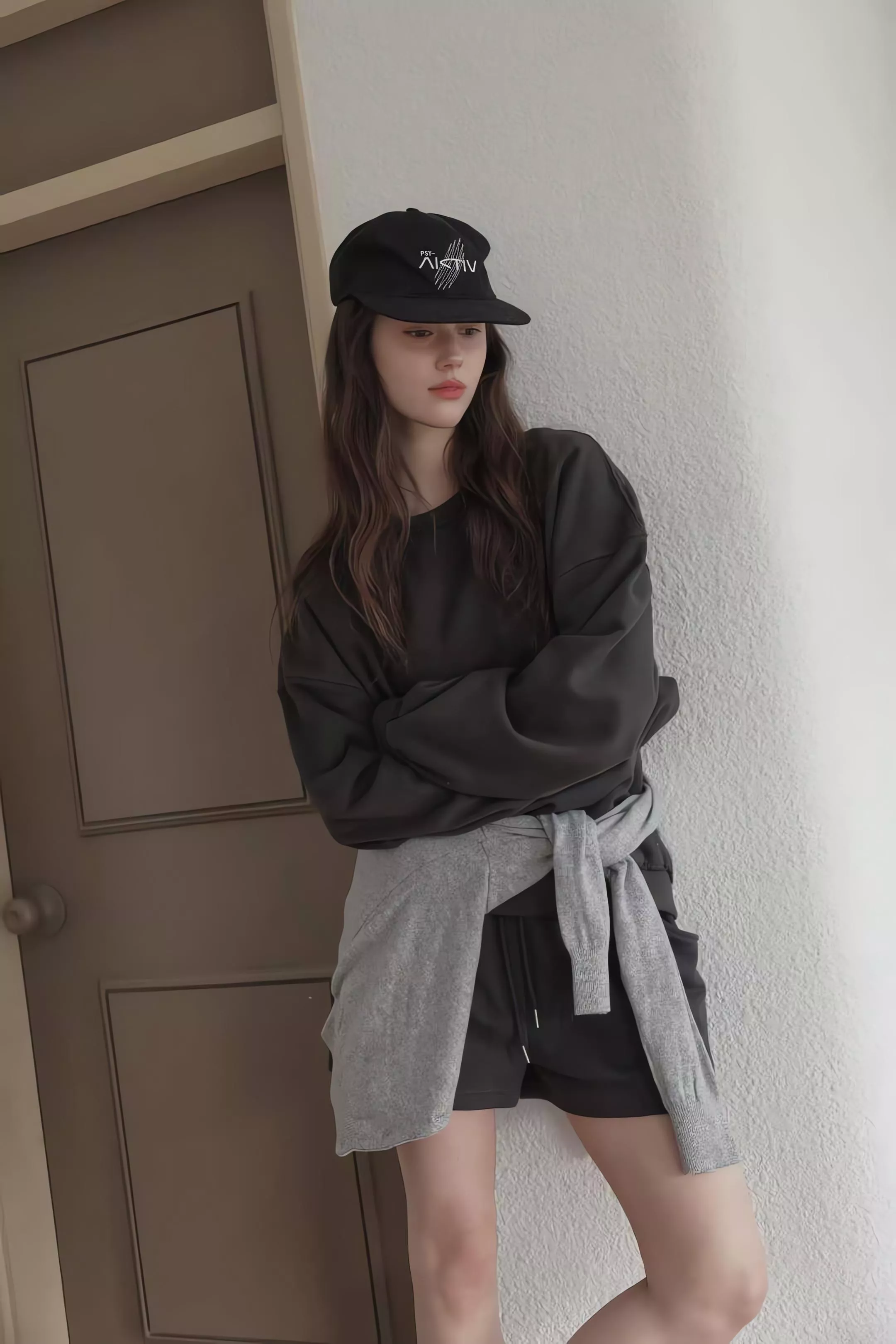 Murmur 慵懶感捲邊休閒套裝 圓領衛衣 鬆緊腰短褲