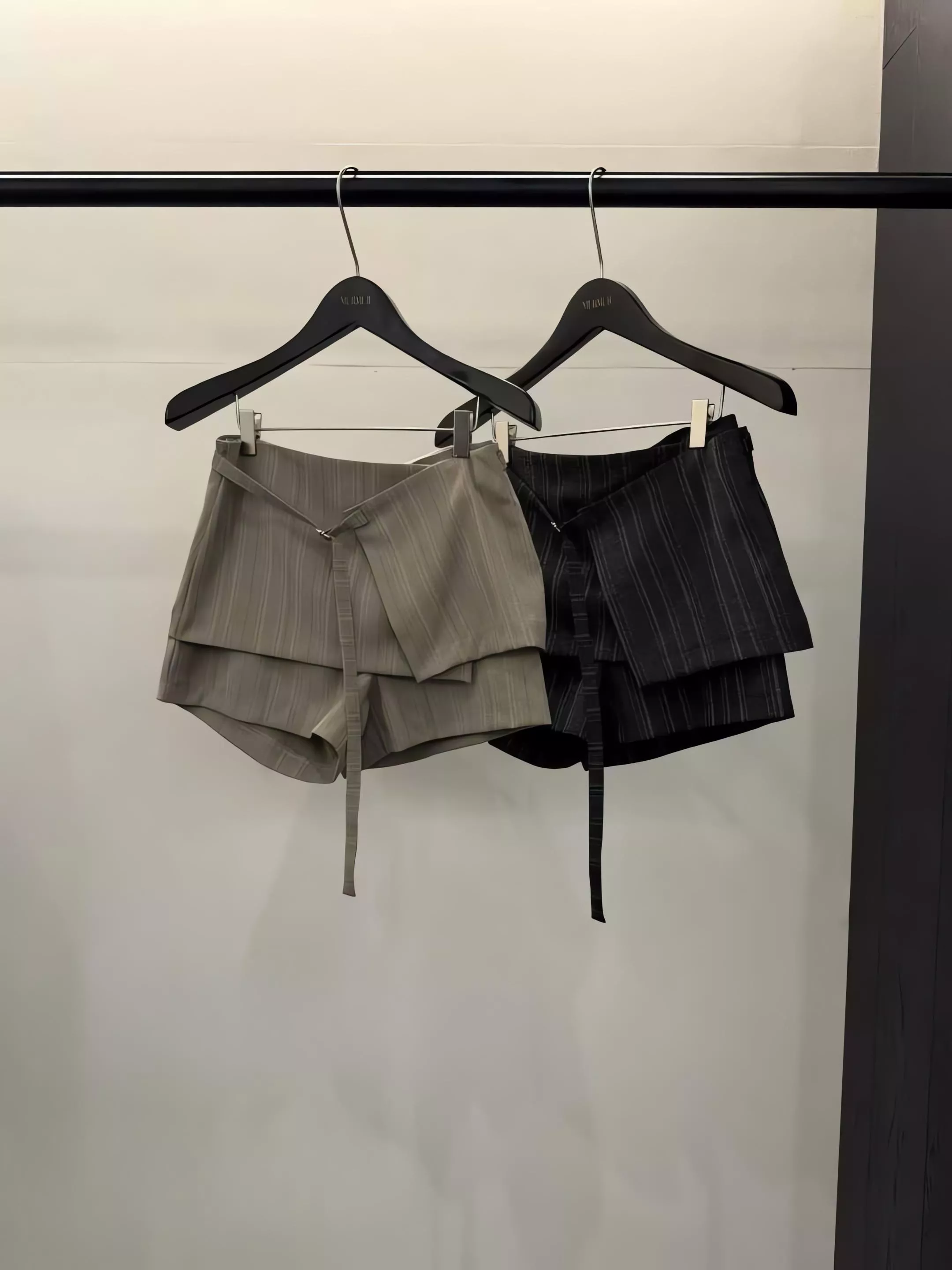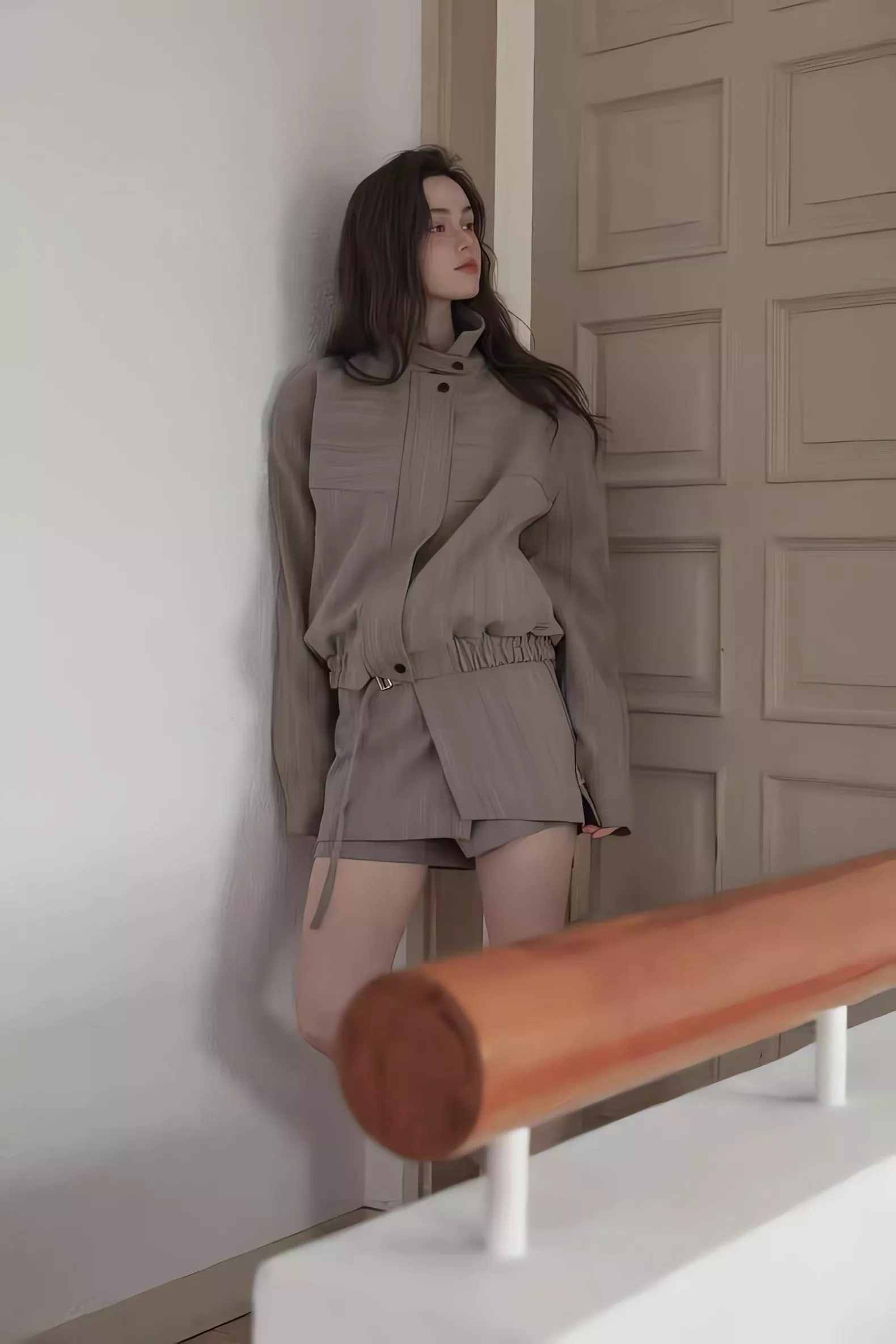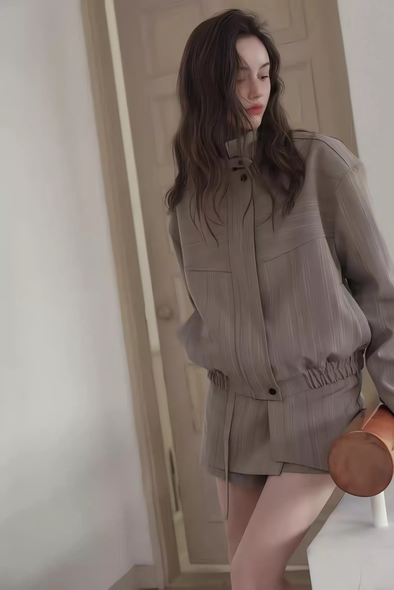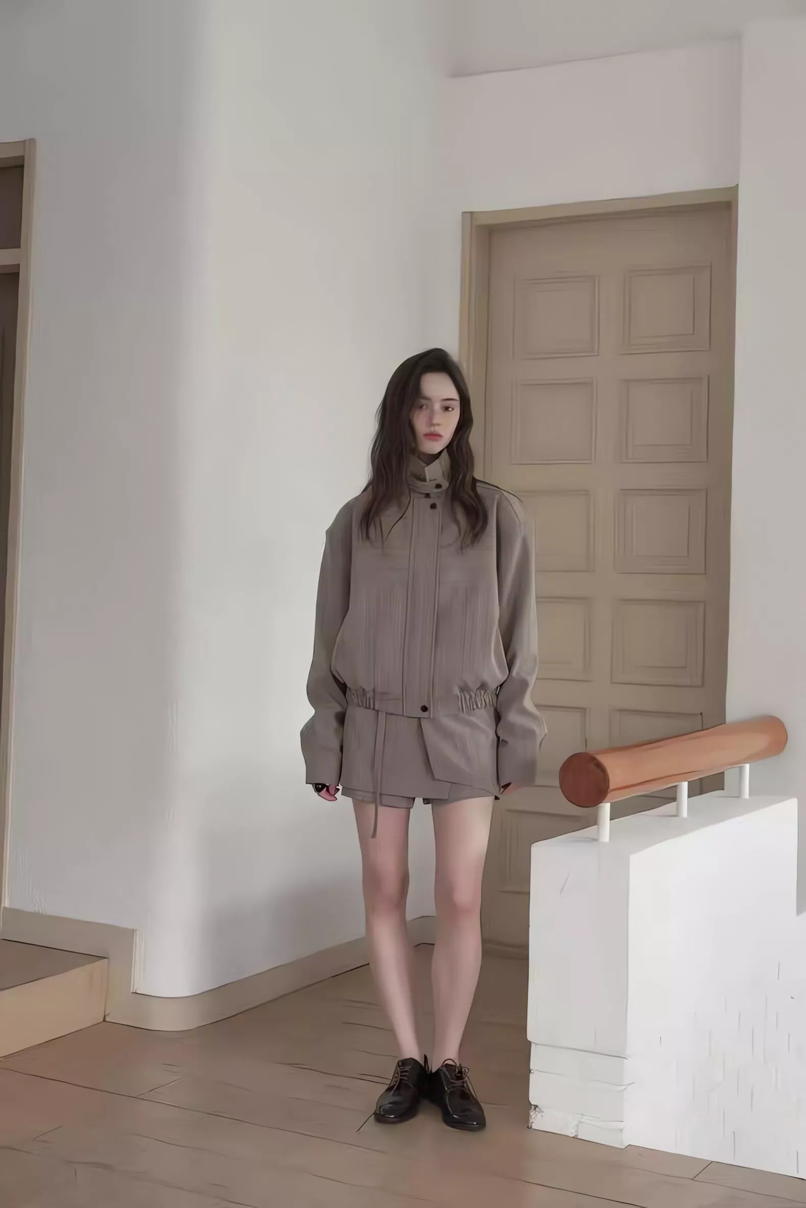 立領飛行夾克的俐落,揉合了「讓人誤以為是裙子」的層次短褲。