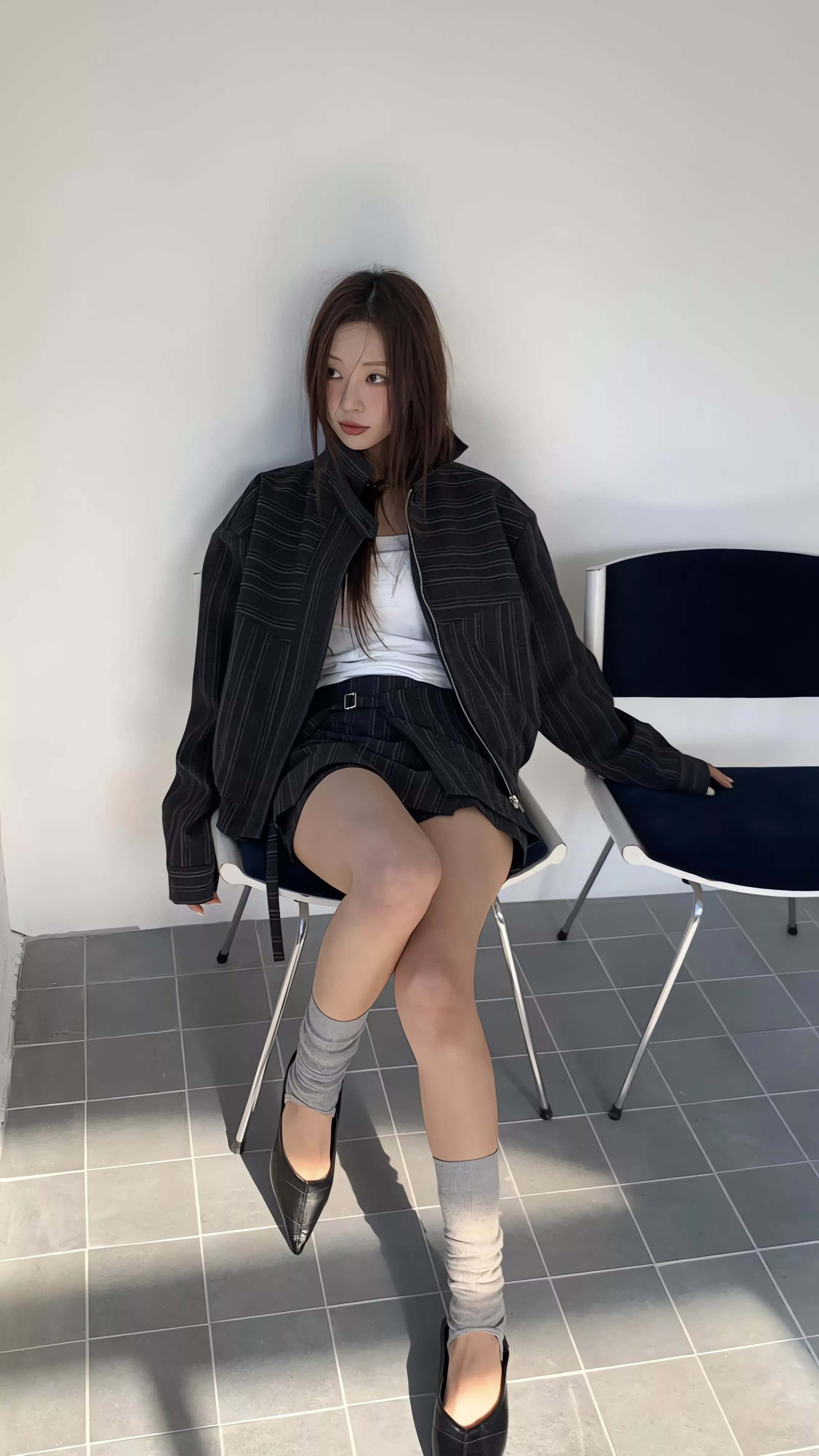 是女孩也是女人。平衡帥氣與優雅的直紋套裝。