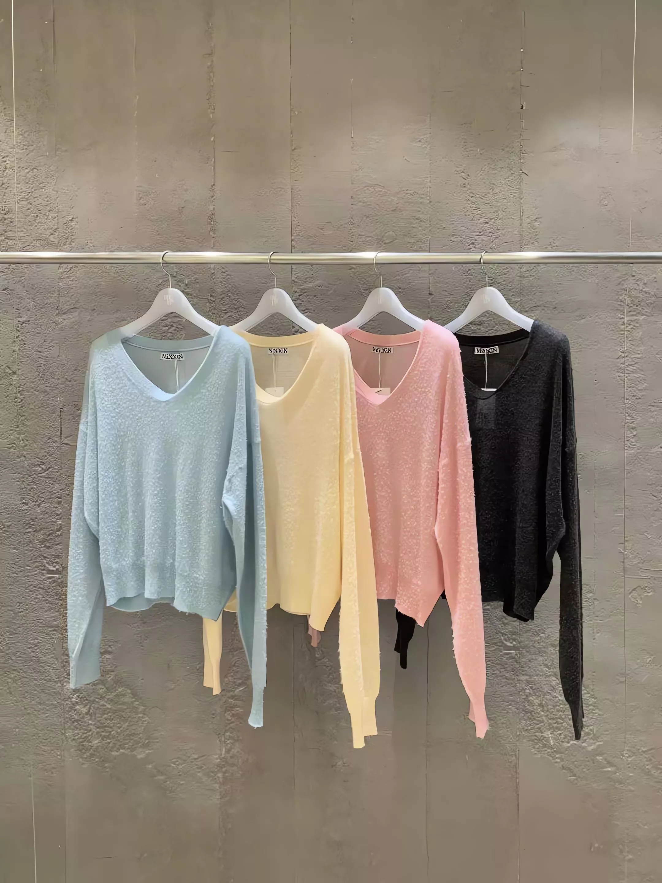 Mixxin V領顆粒磨毛美利奴羊毛針織衫