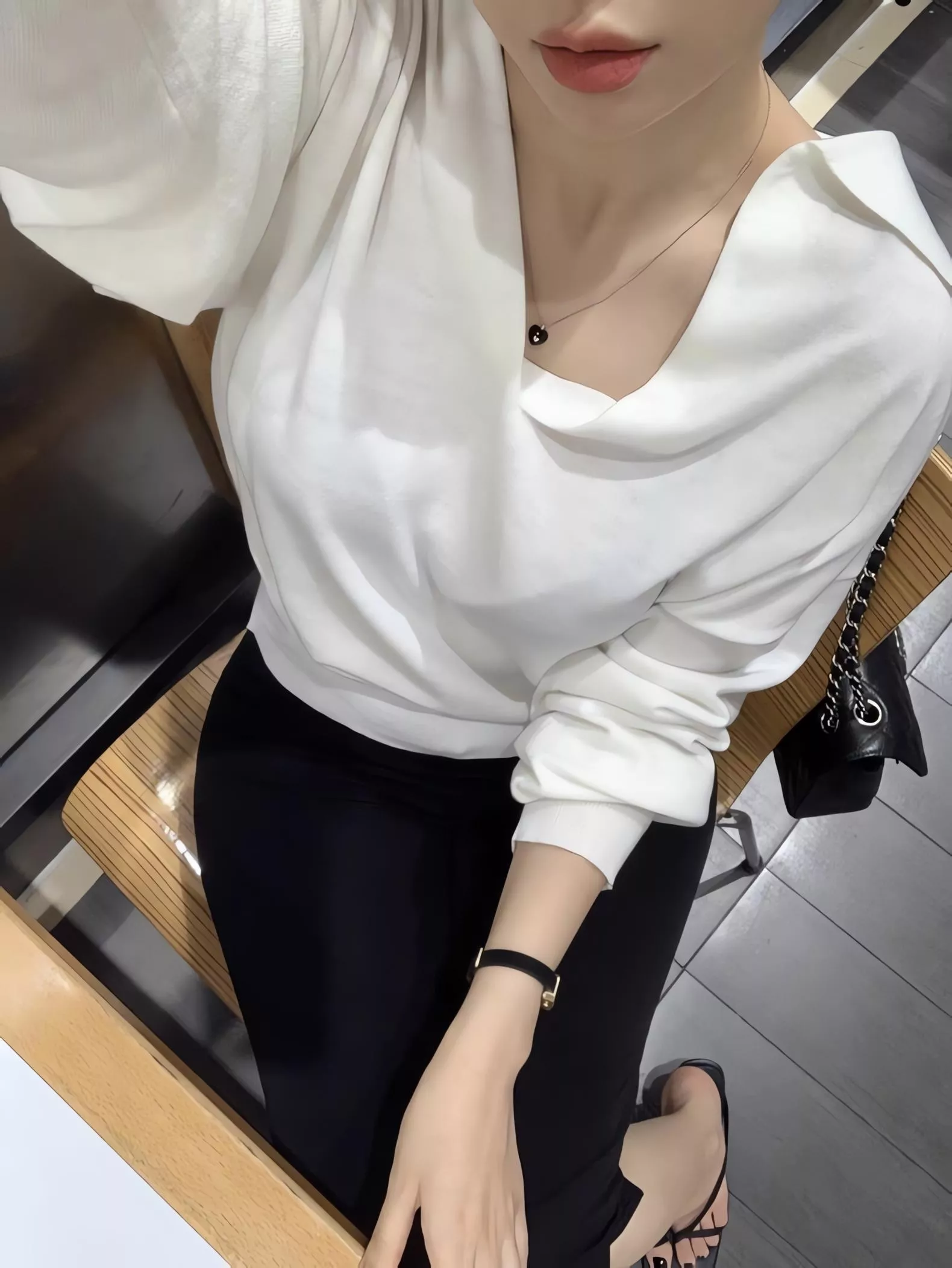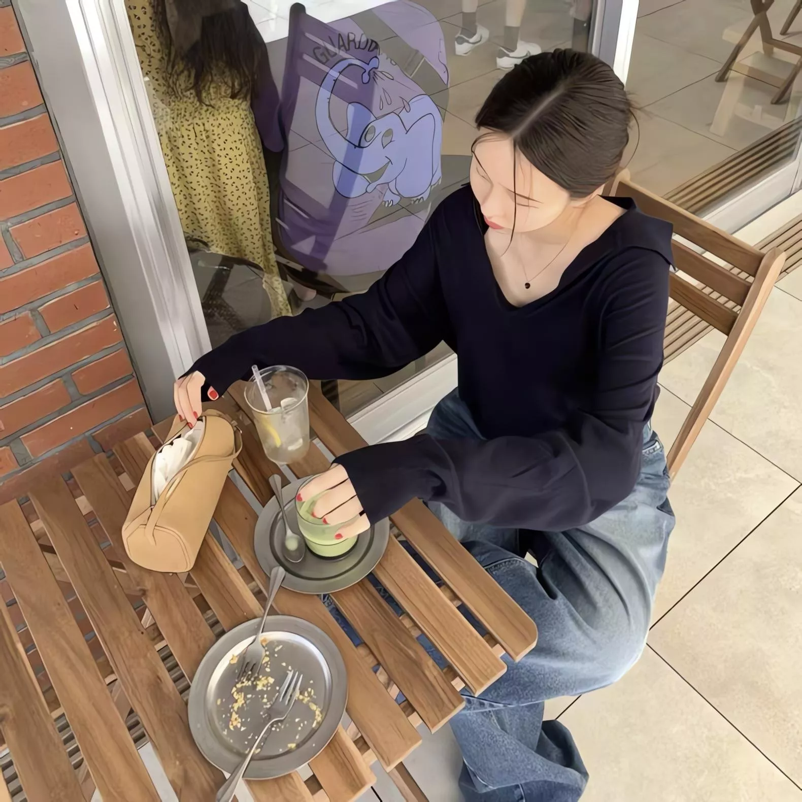 選用高品質羊絨與超細羊毛,觸感像雲朵般親膚,微微寬鬆的剪裁巧妙修飾身型,隨性的 V 領露出鎖骨線條,讓頸部視覺更顯纖細。