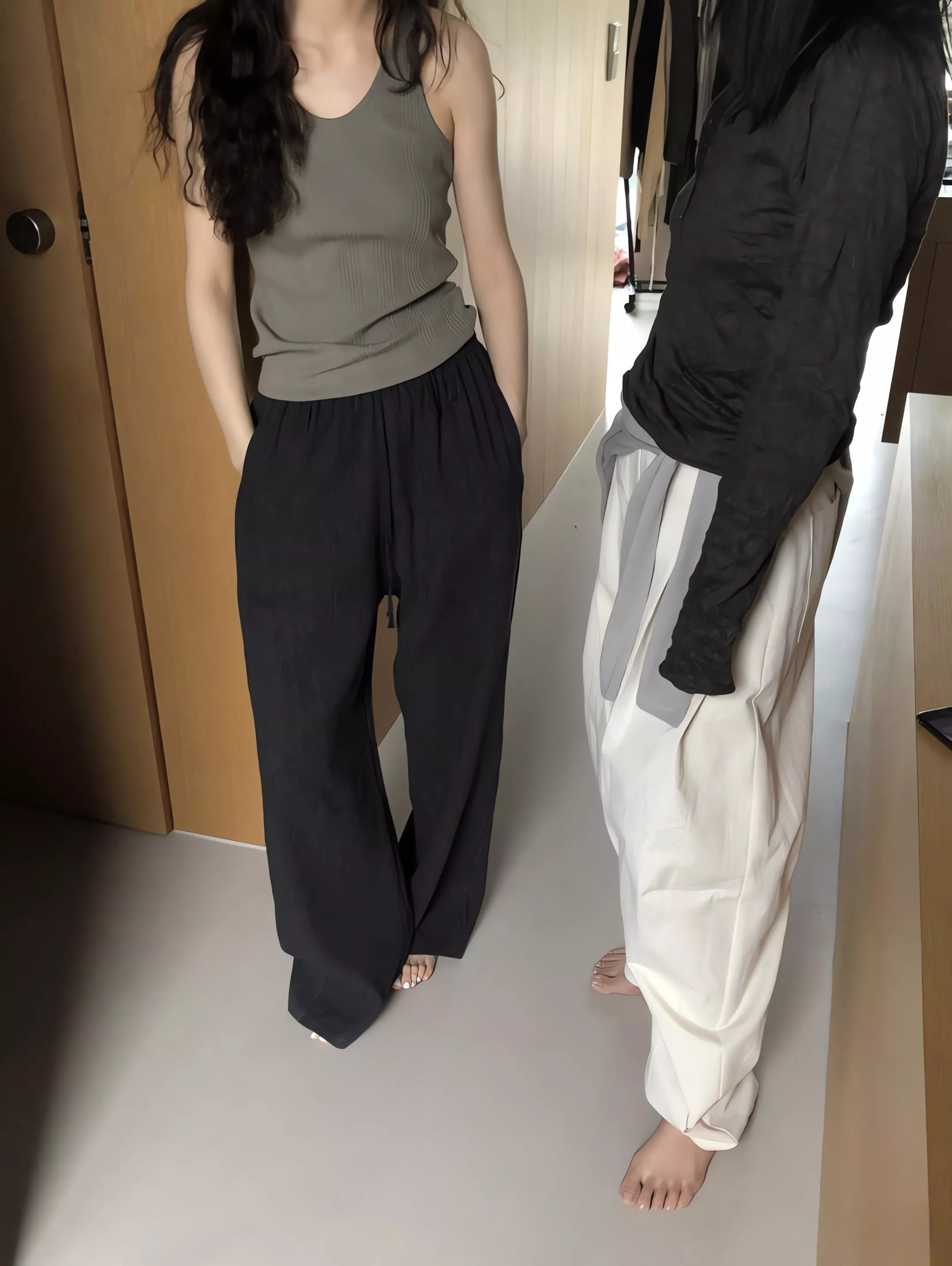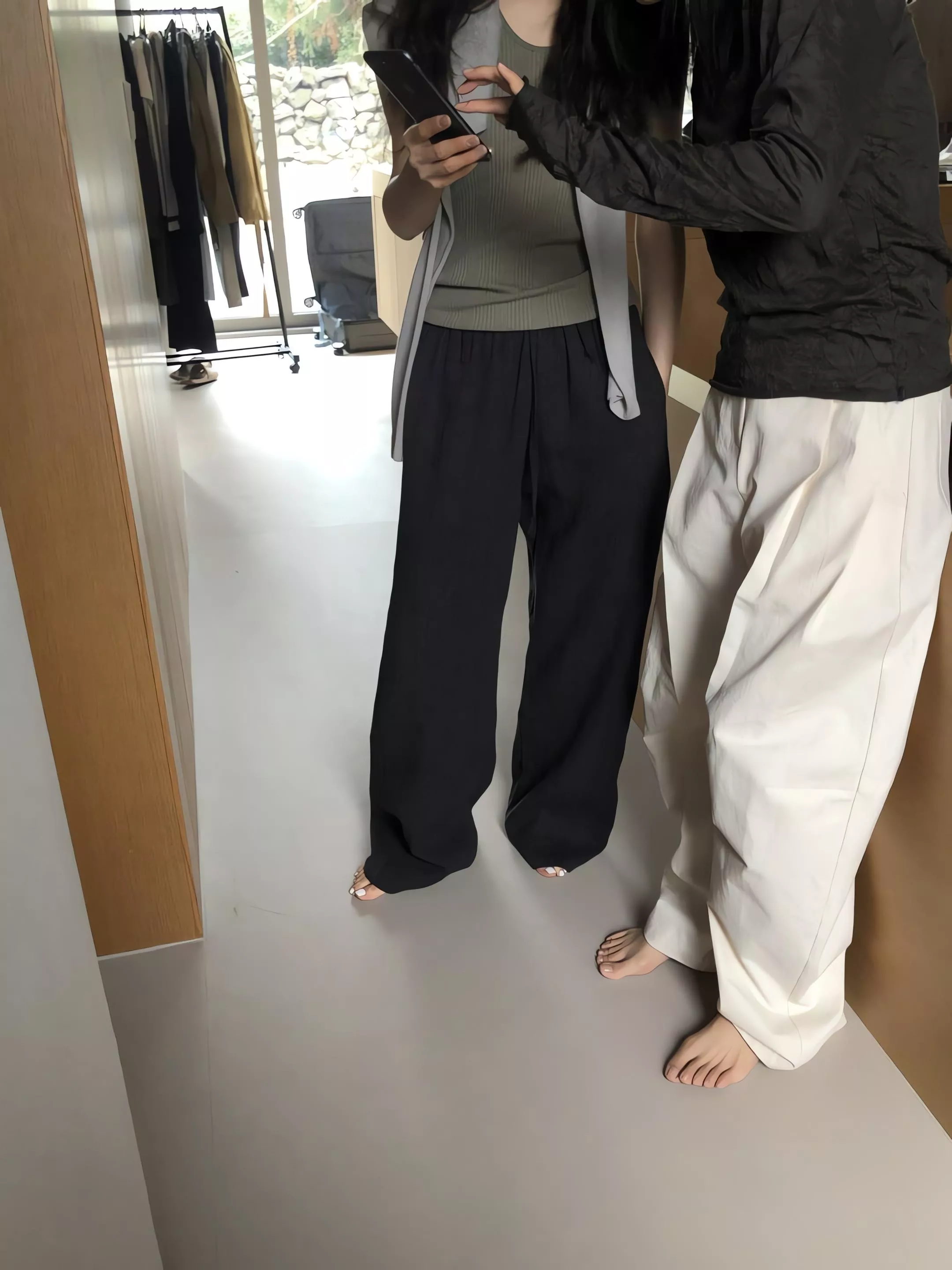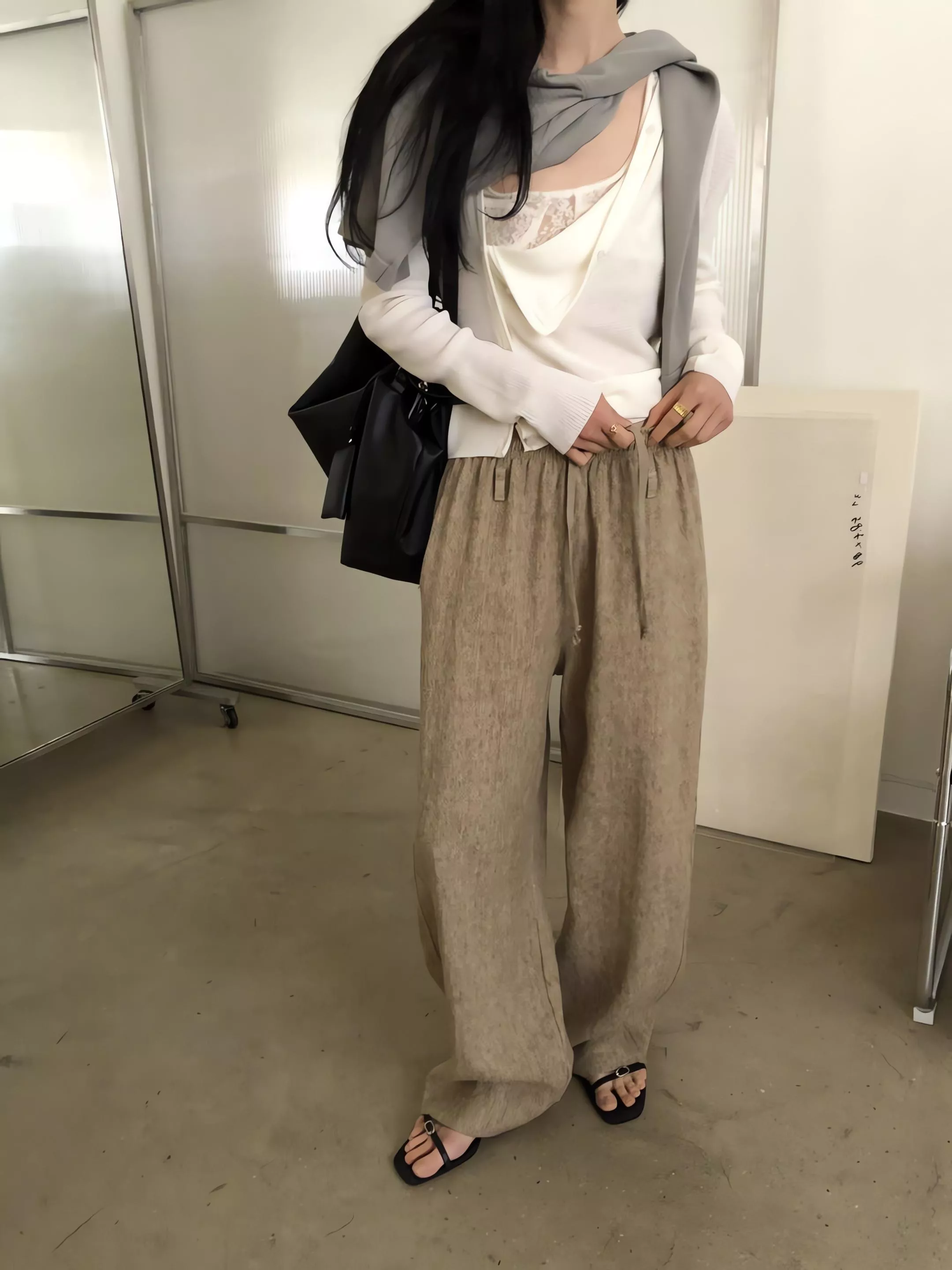 Lake 顯瘦顯高的夏日鬆弛感穿搭 鬆緊腰亞麻休閒寬褲