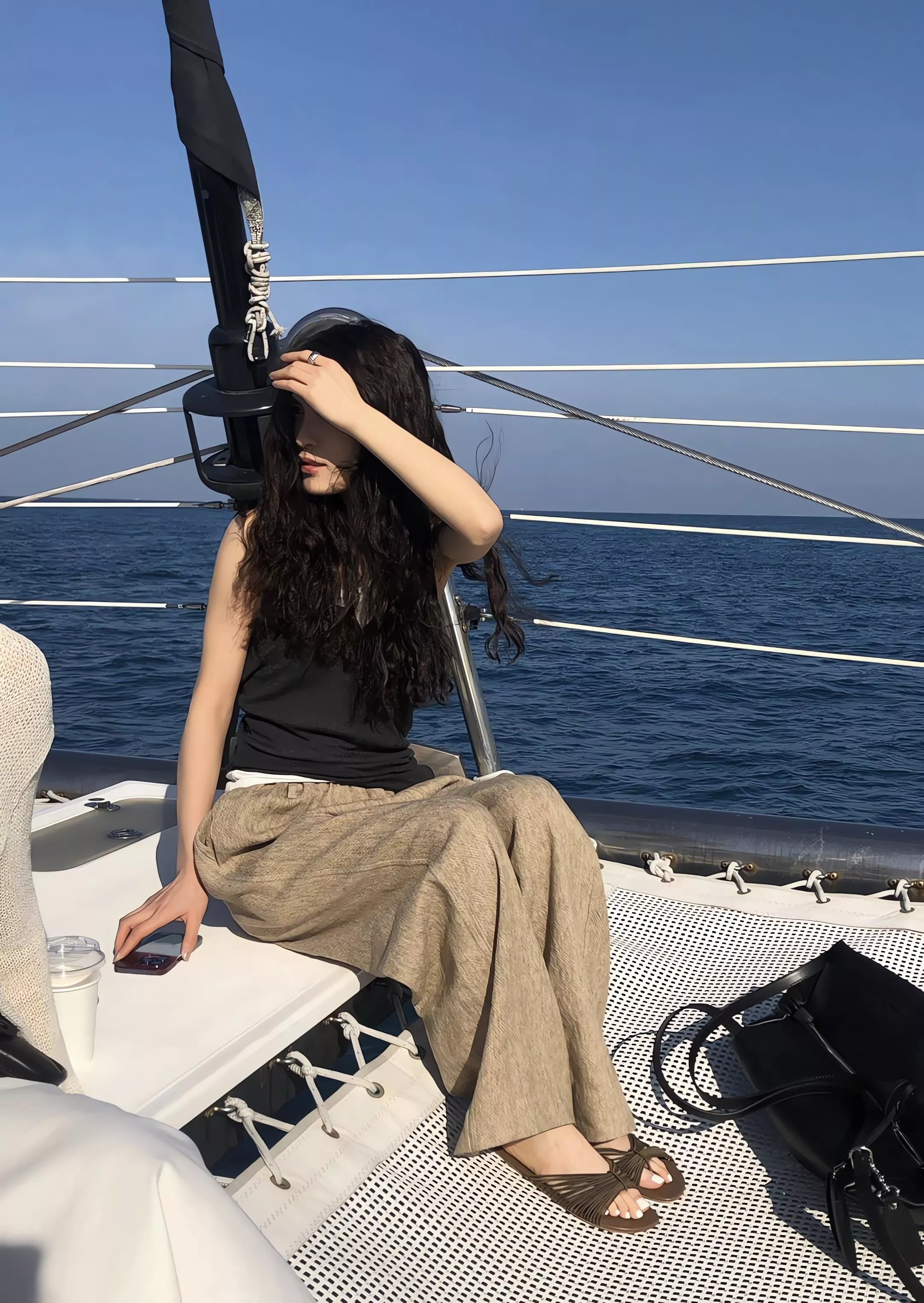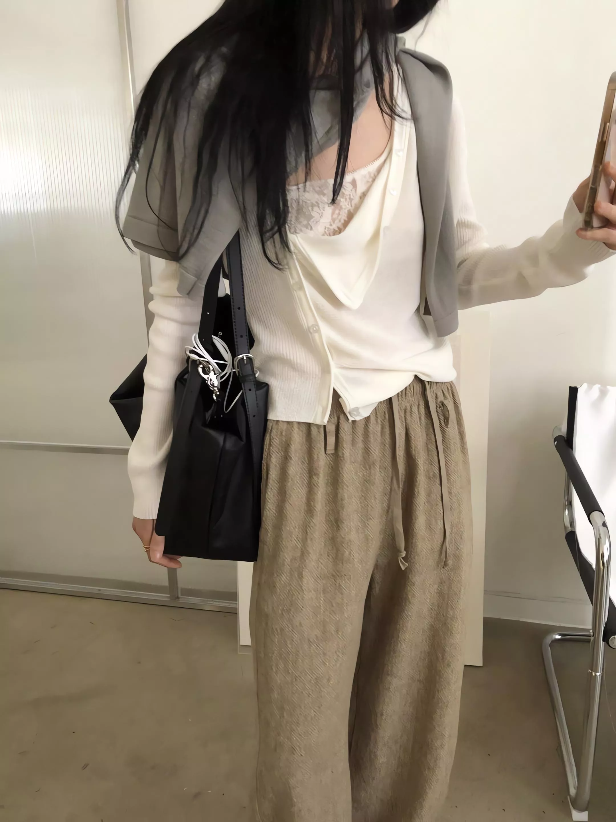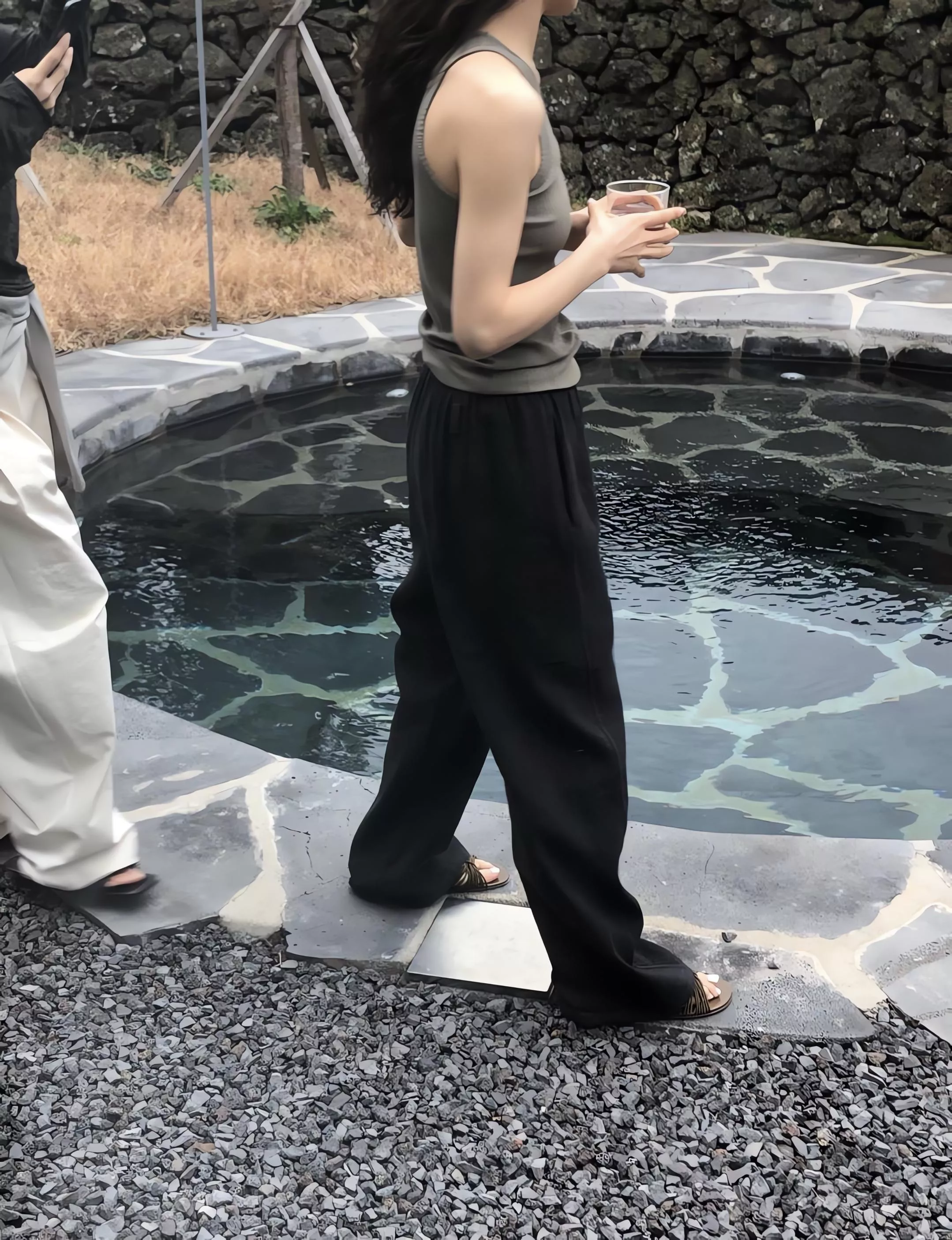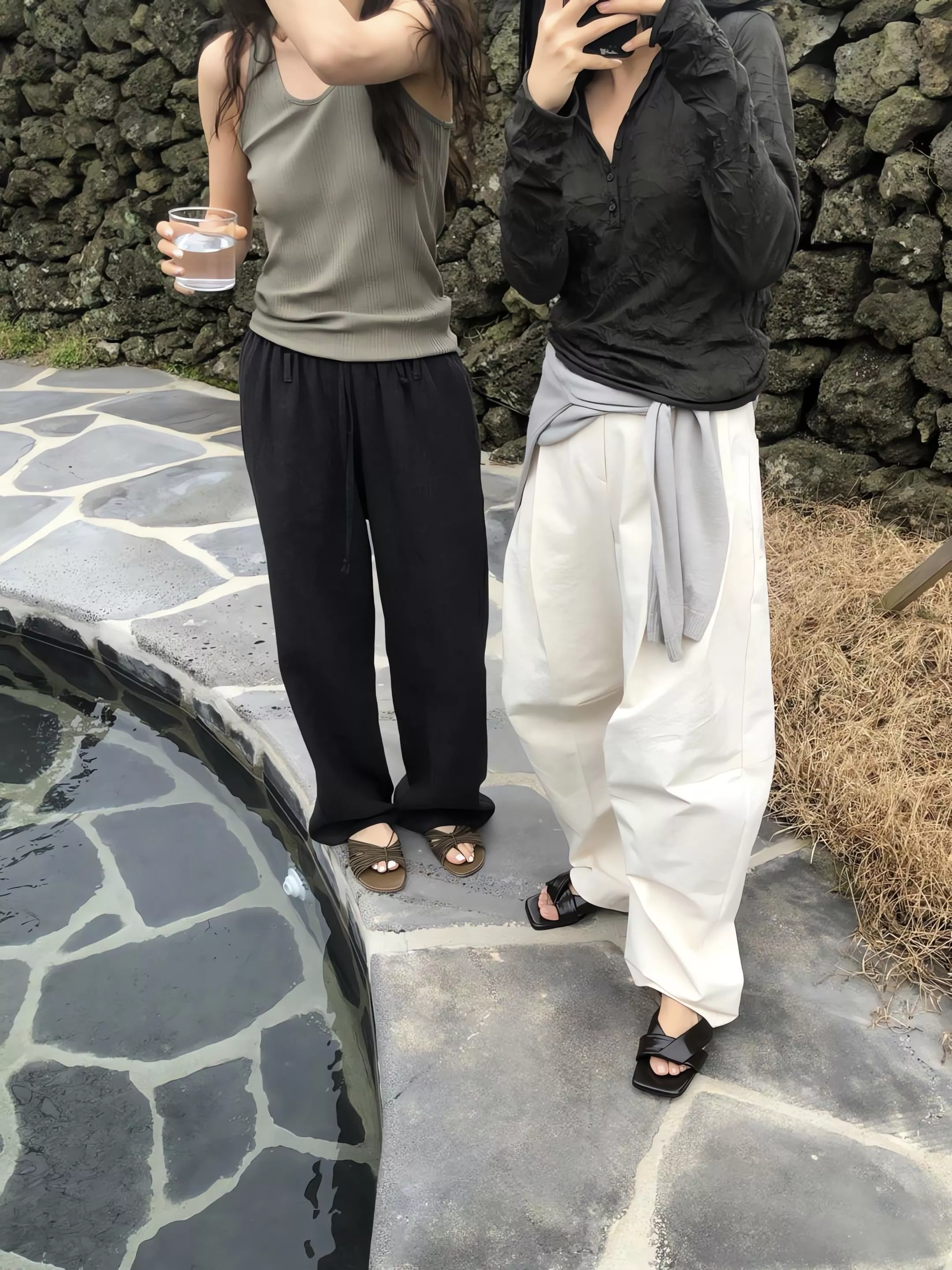 Lake 顯瘦顯高的夏日鬆弛感穿搭 鬆緊腰亞麻休閒寬褲