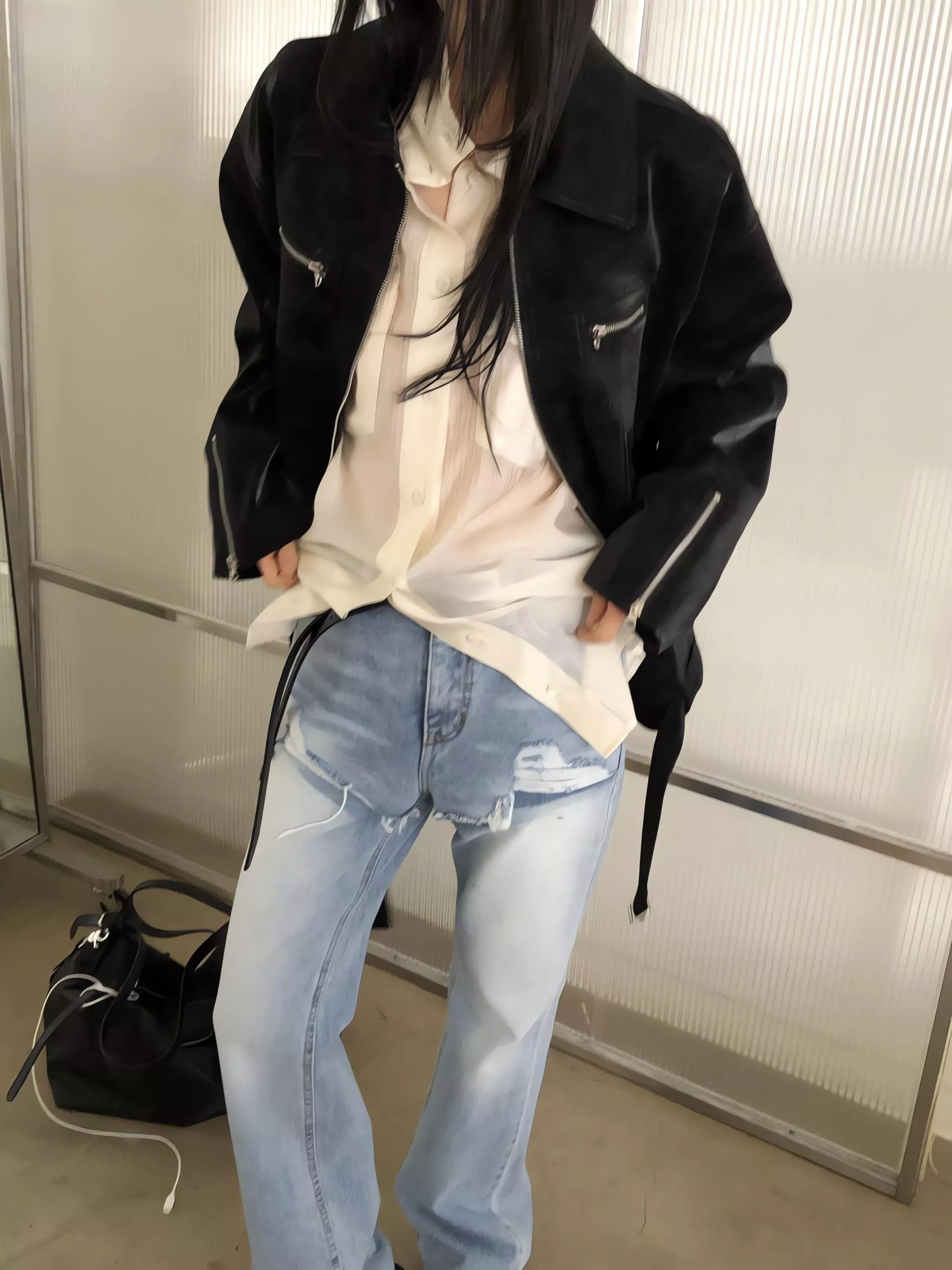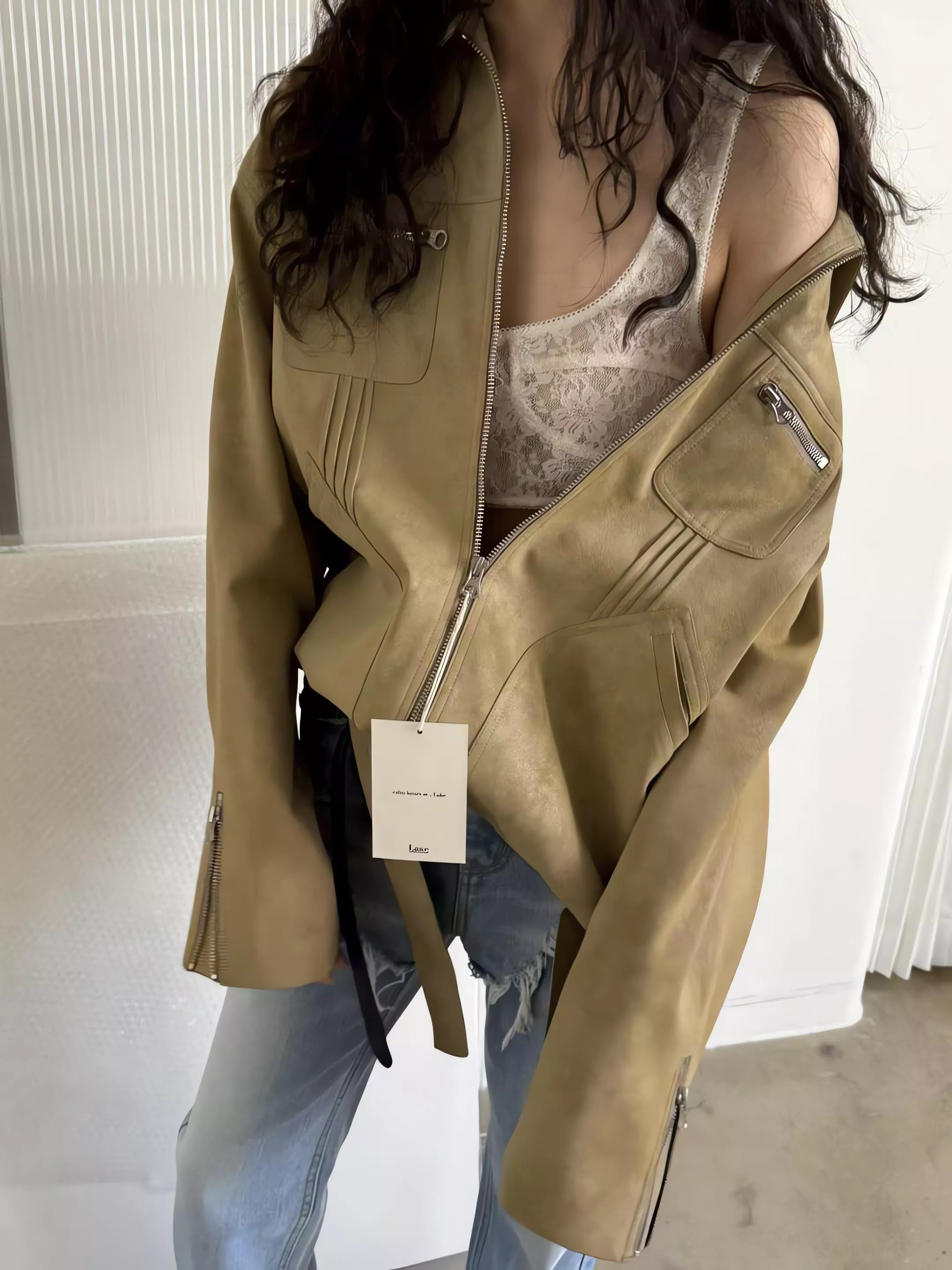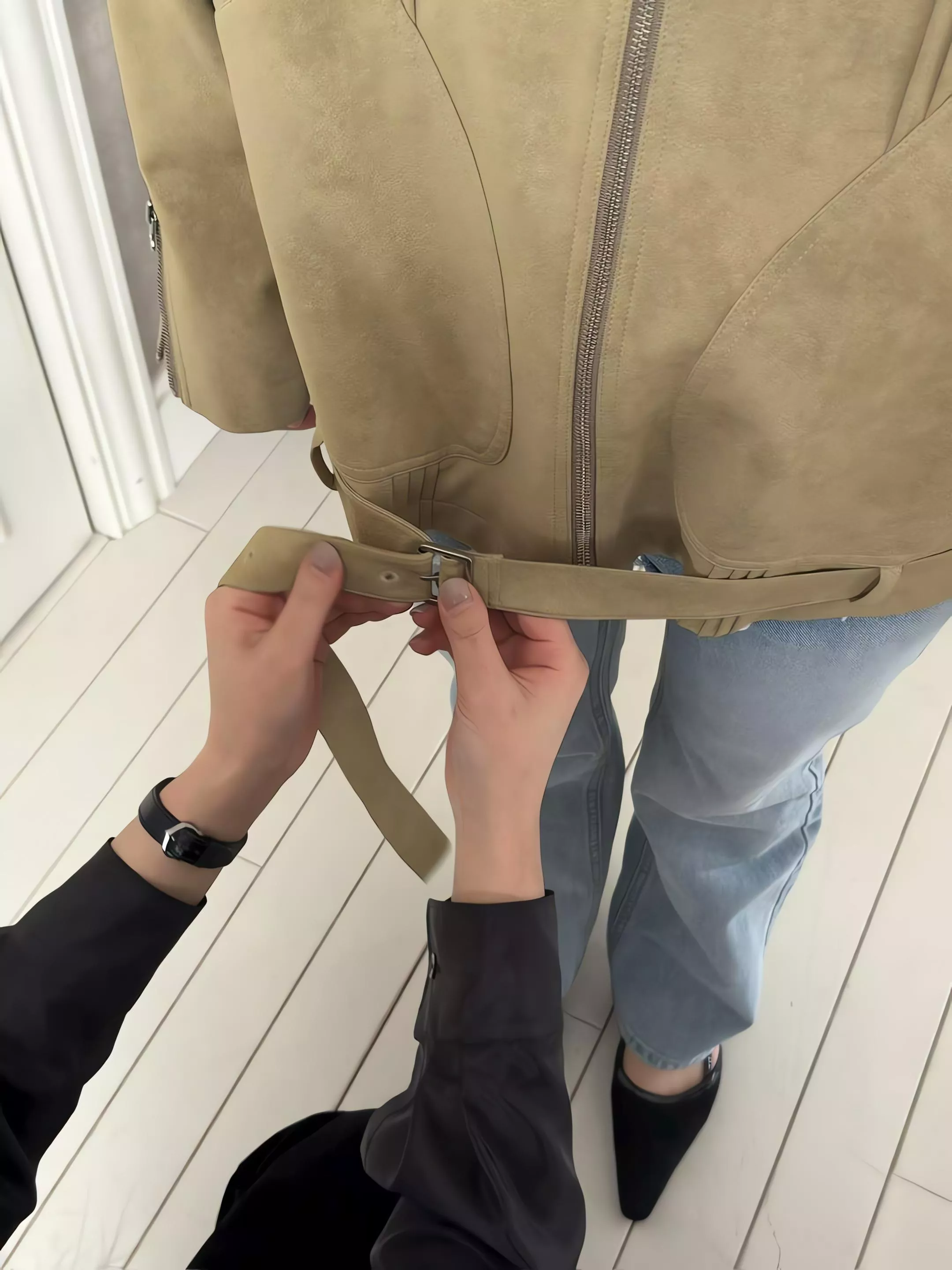 Lake 早春的小叛逆 🌿 復古腰帶 水洗麂皮夾克外套 機車皮衣外套