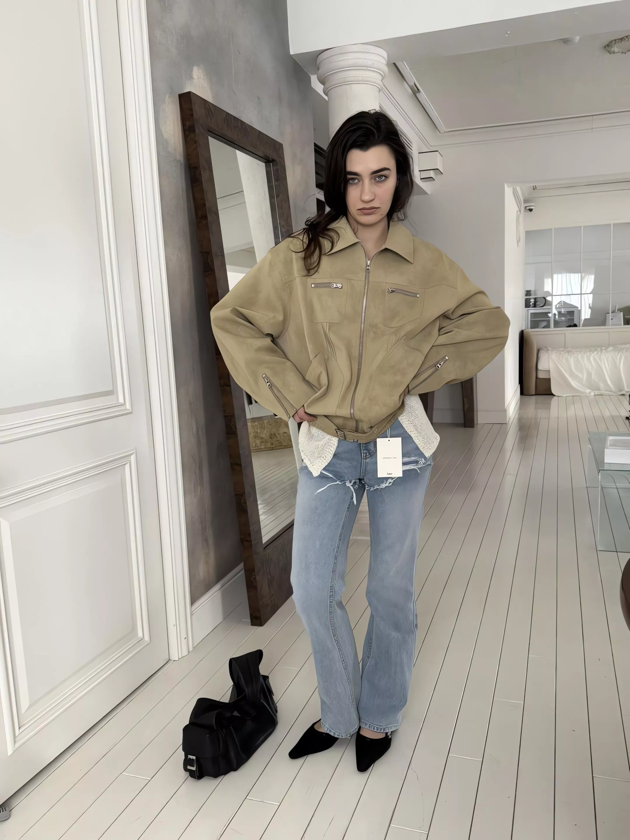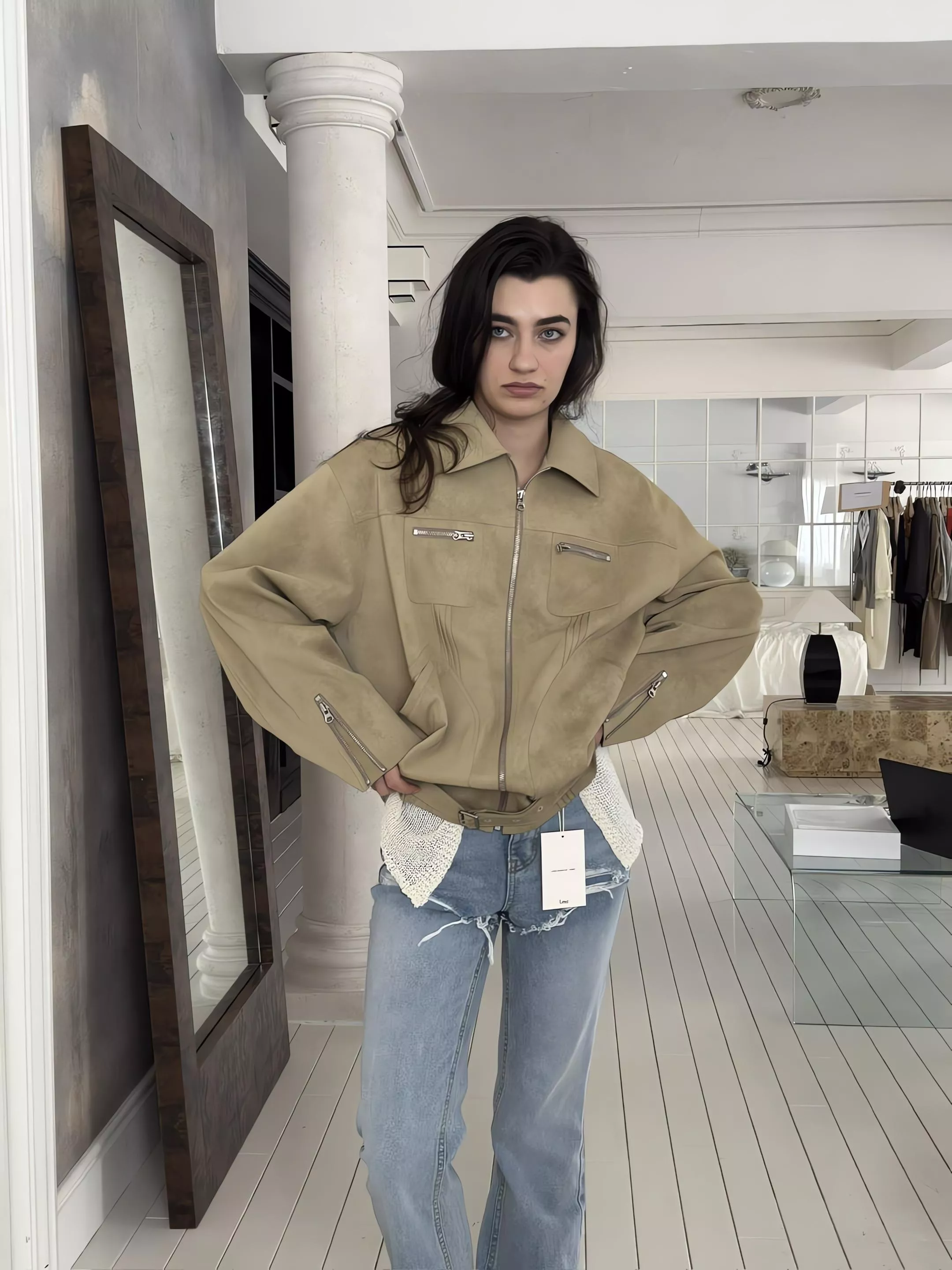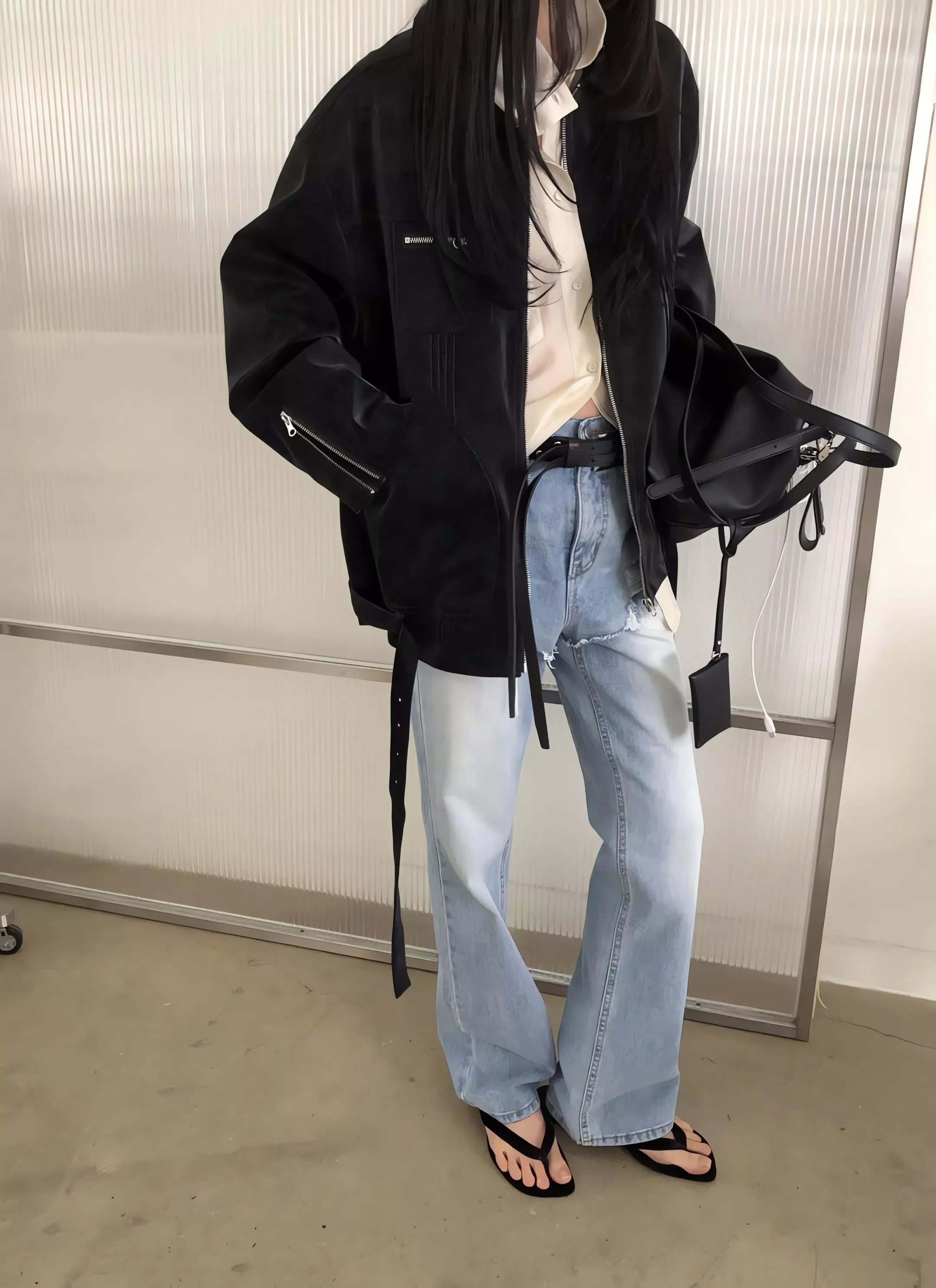 Lake 早春的小叛逆 🌿 復古腰帶 水洗麂皮夾克外套 機車皮衣外套