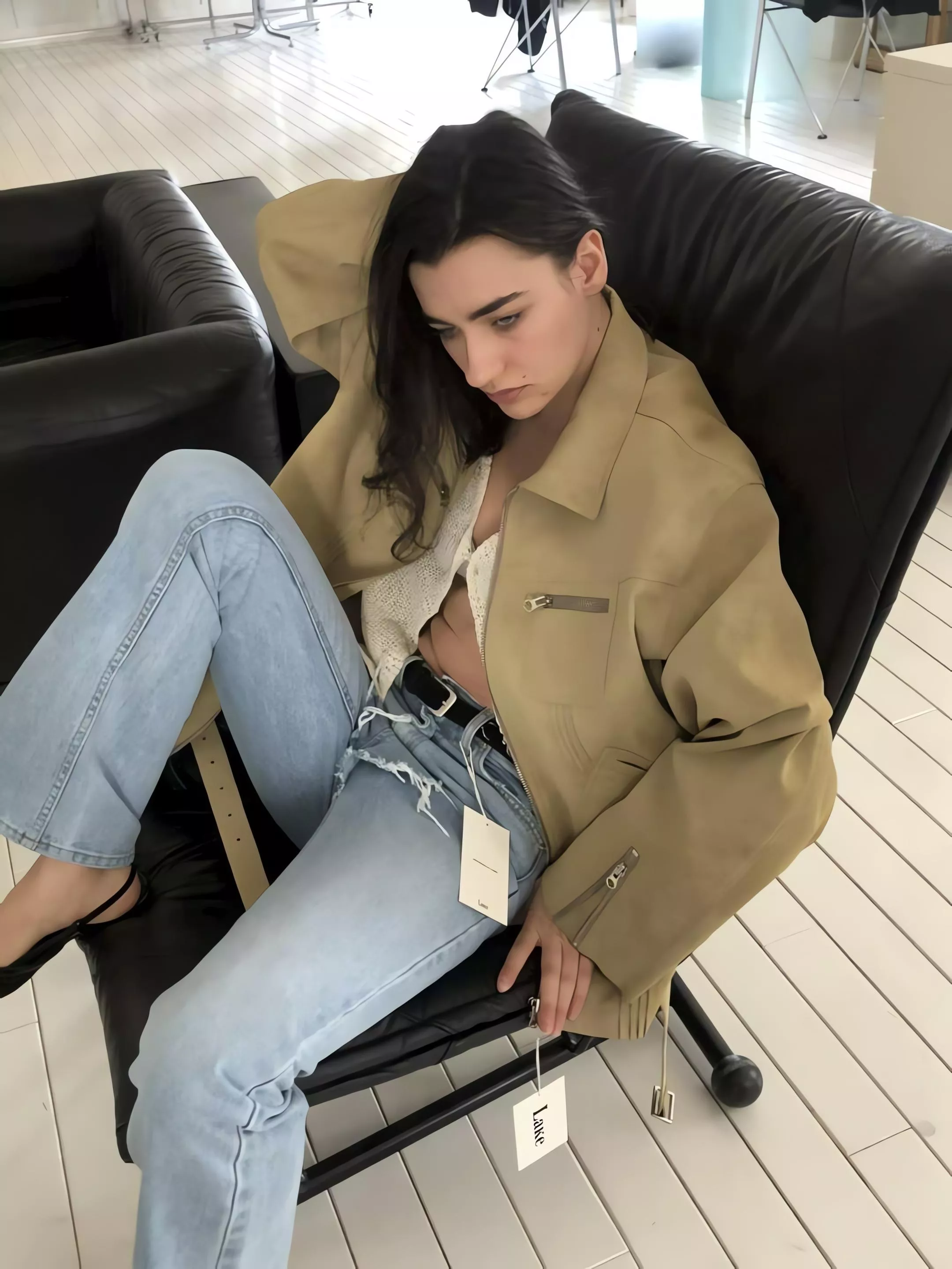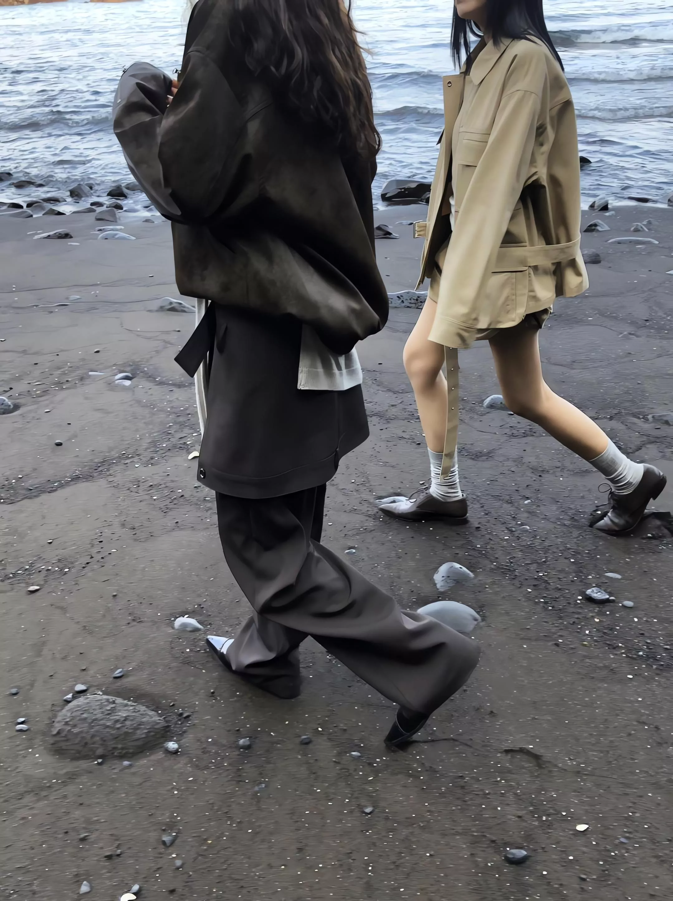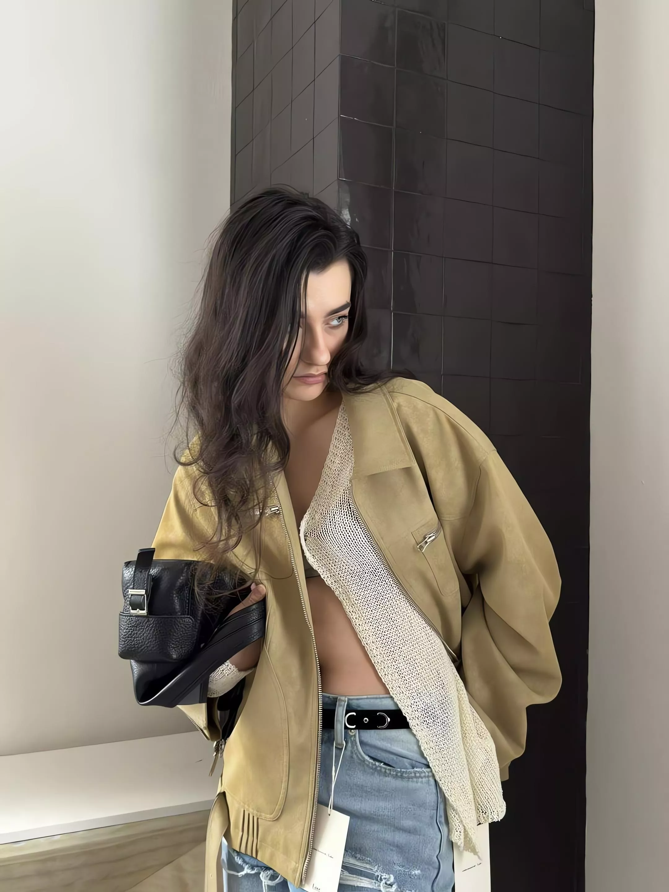 去掉了厚重感,保留了那種「剛剛好」的帥氣,是那種在冷氣房或微涼春夜裡,隨手一披就時髦到不行的單品。