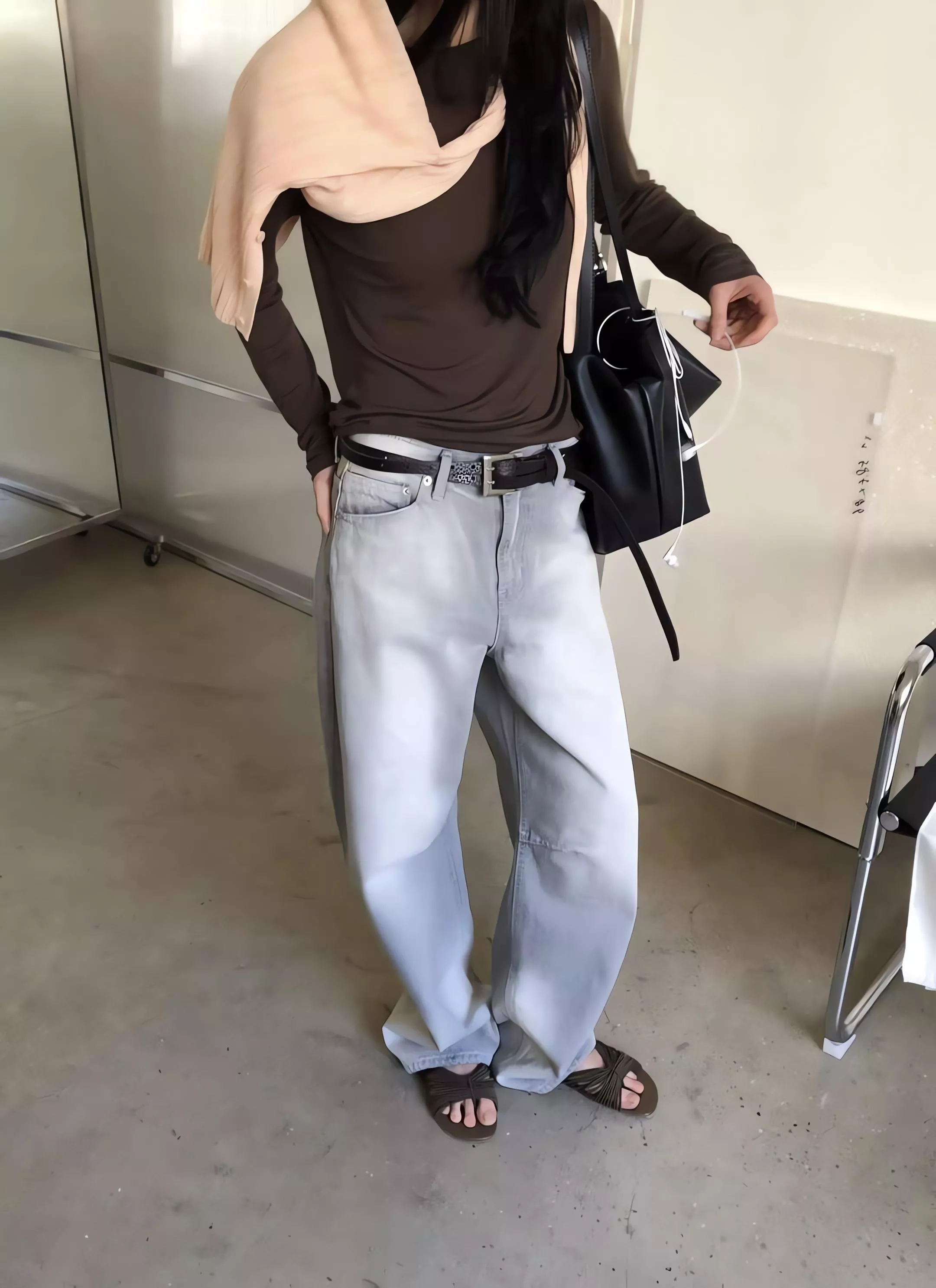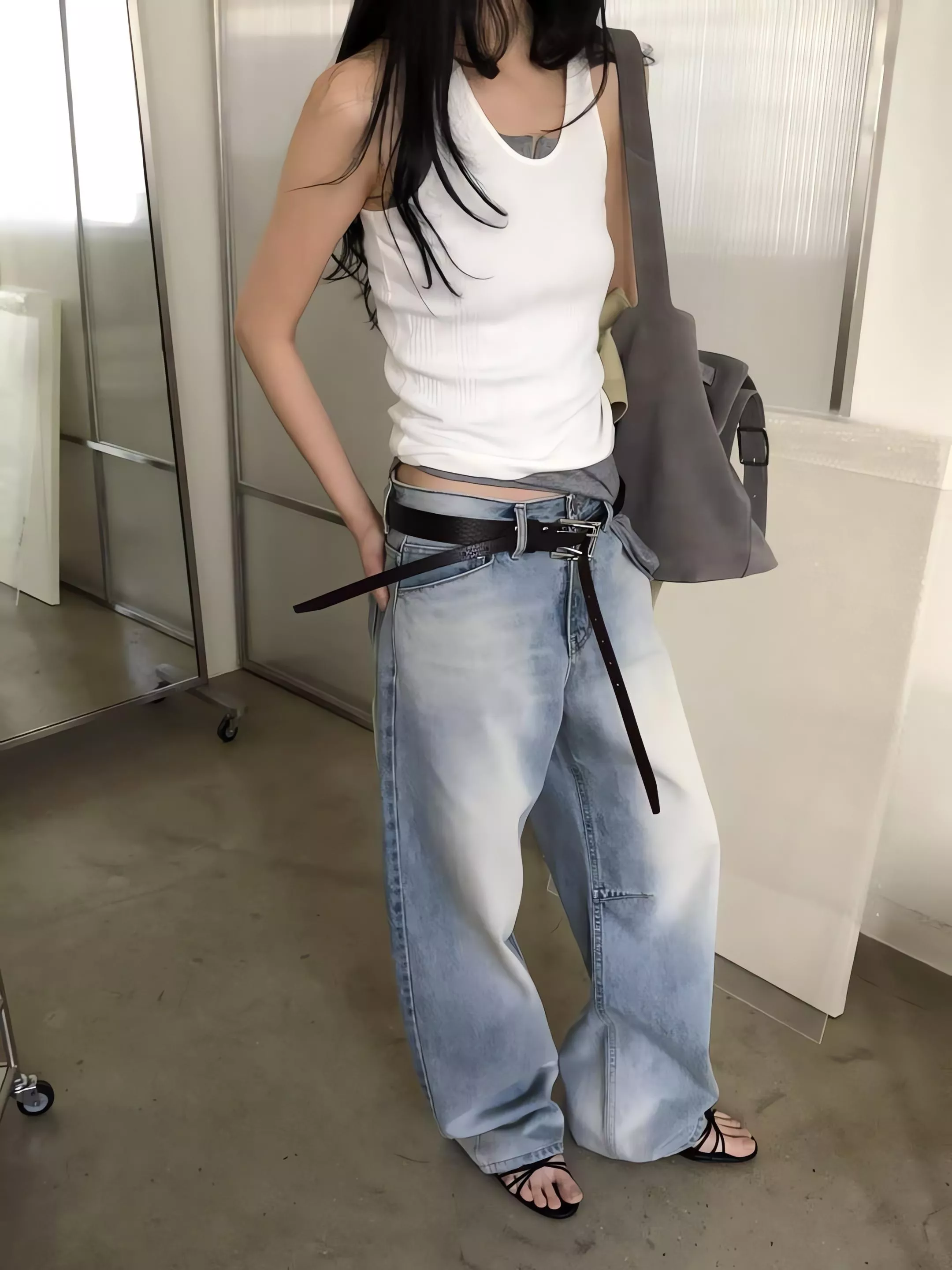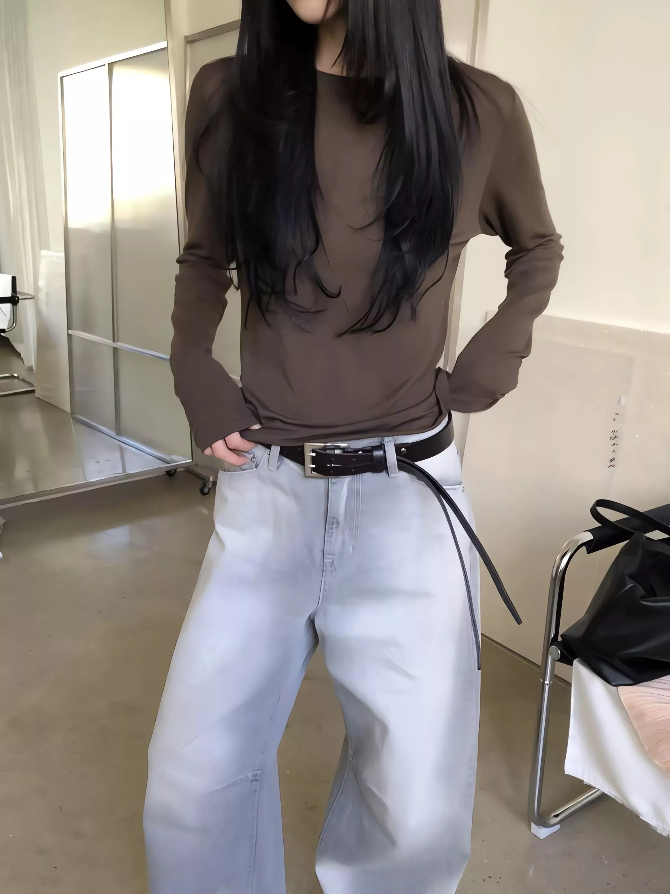 無論是搭配俐落的短版上衣,還是隨性的大廓形襯衫,都能穿出那種「隨便穿就很會搭配」的高級感。