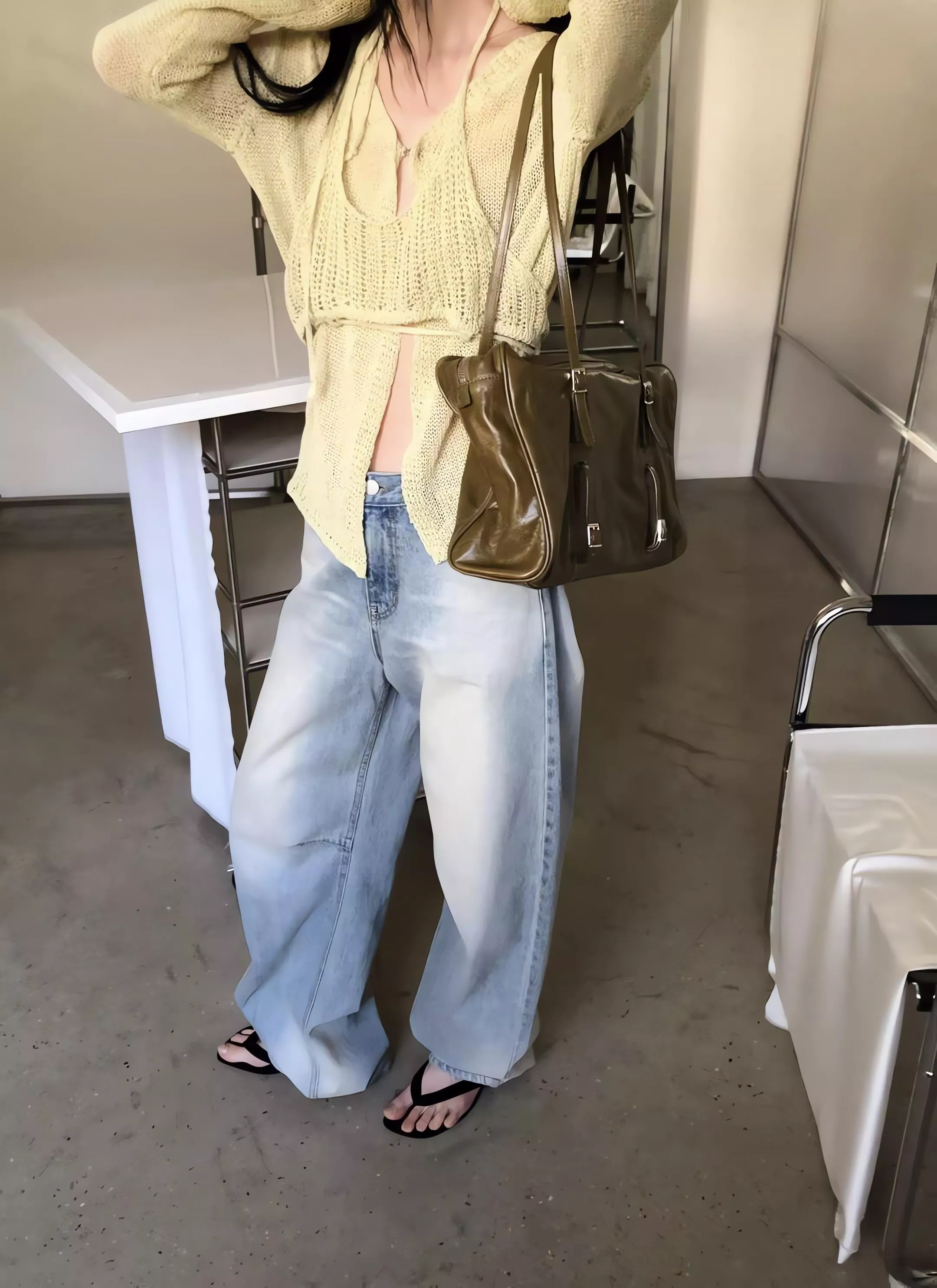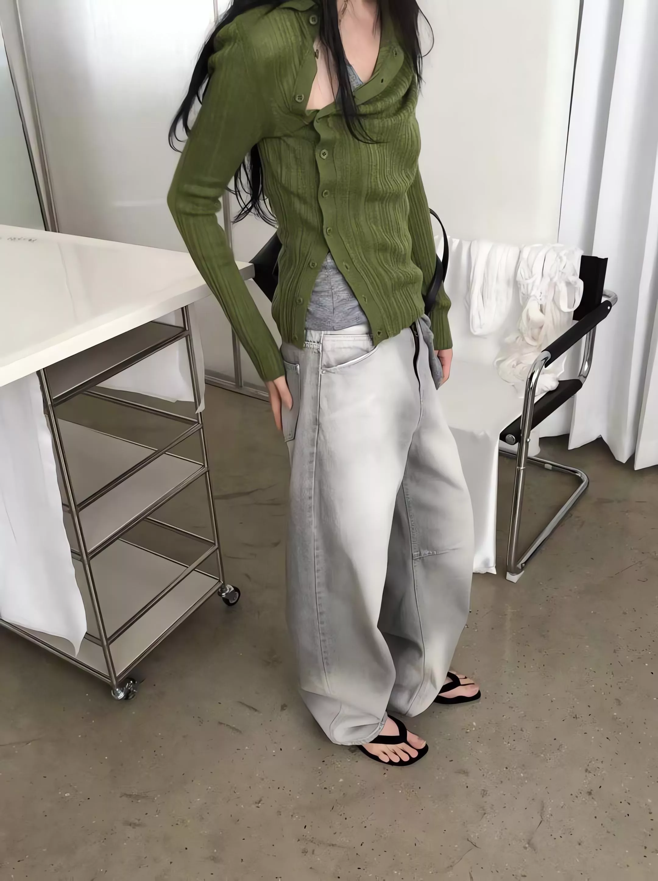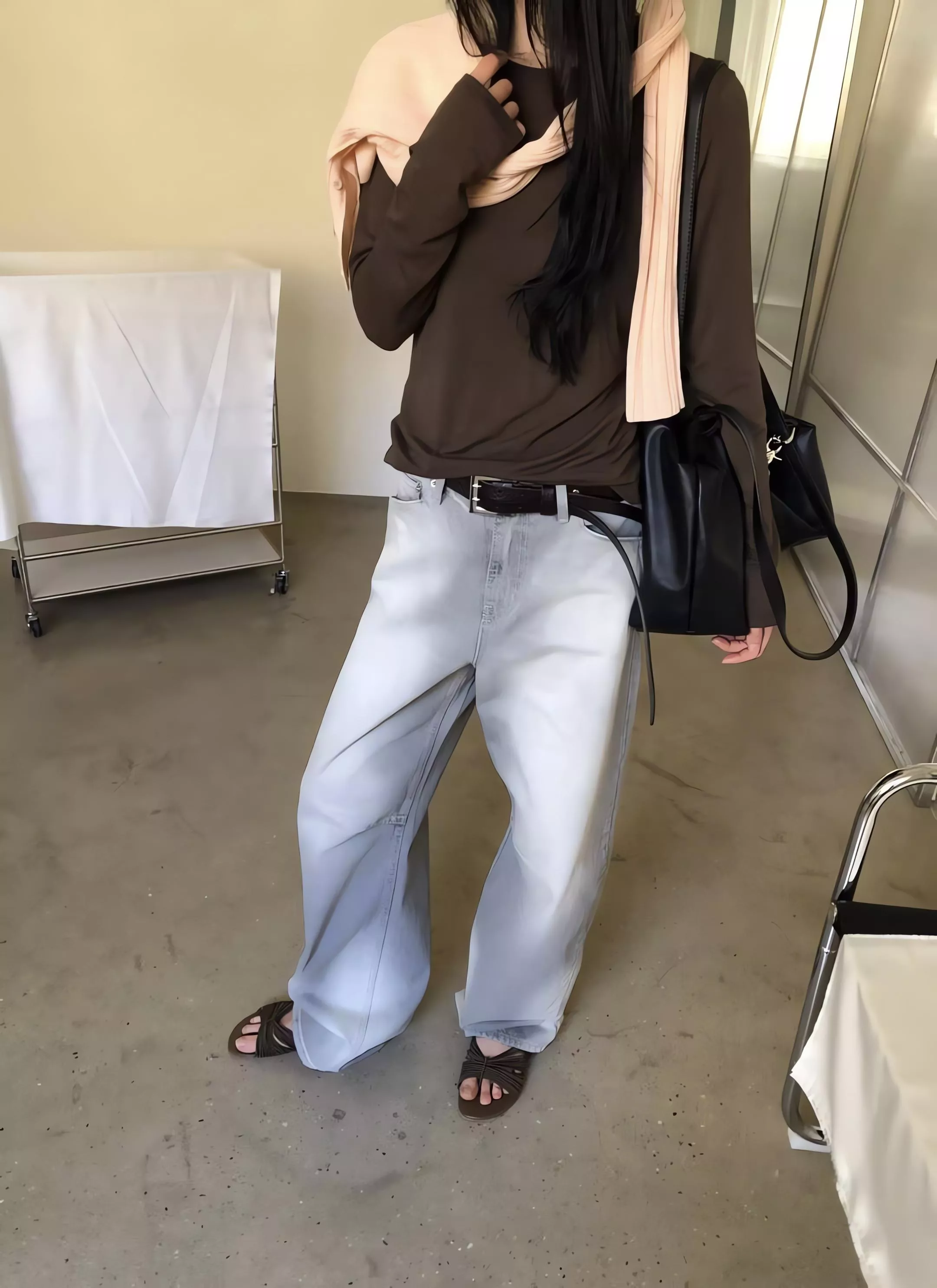 無論是搭配俐落的短版上衣,還是隨性的大廓形襯衫,都能穿出那種「隨便穿就很會搭配」的高級感。