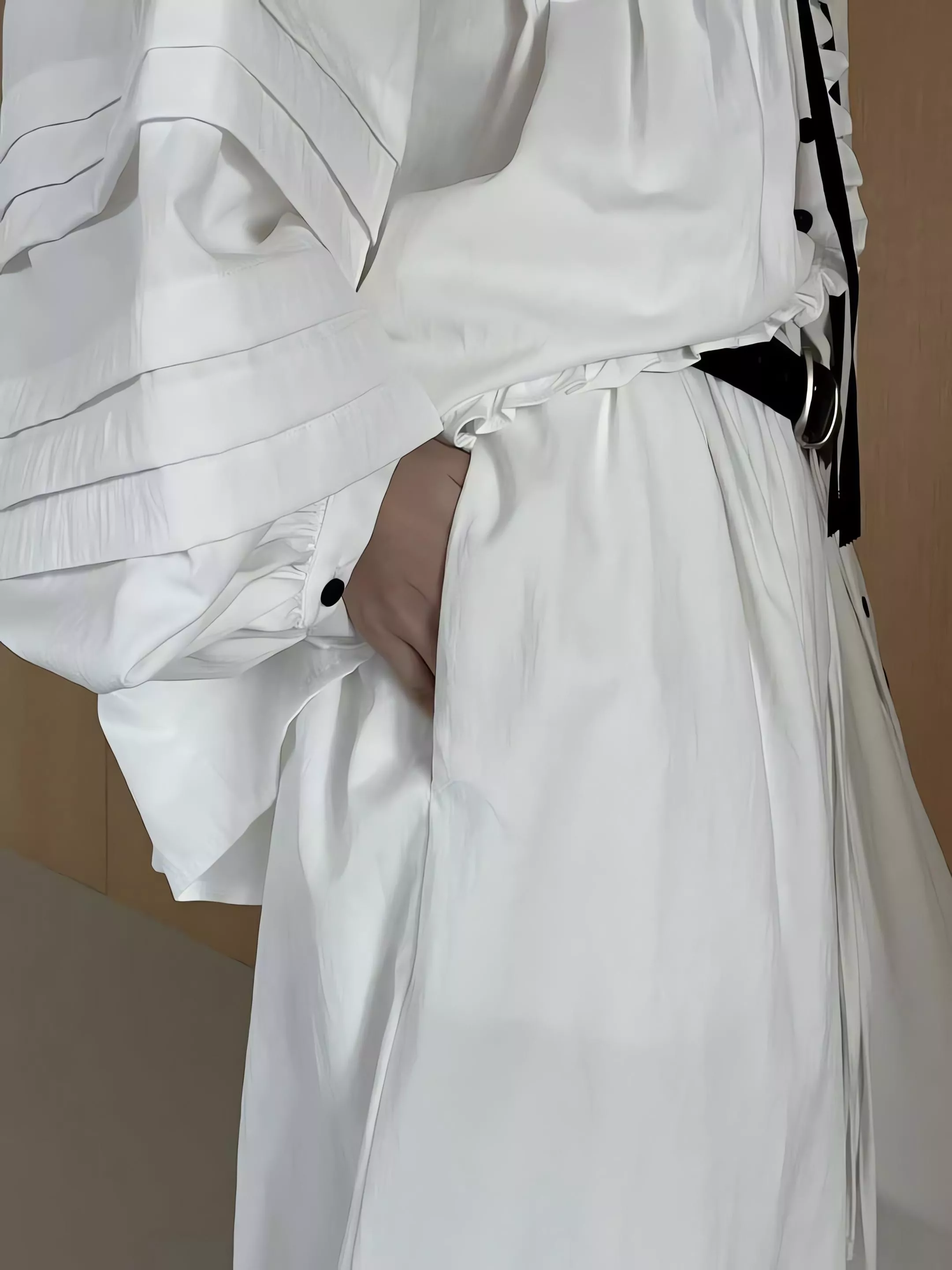 黑色綁帶完全是點睛之筆,黑與白的視覺對比,讓原本純粹的層次感多了一份精緻的層次,是一款無論是想穿出個性感、還是溫柔氣質,都能完美駕馭的靈魂單品。