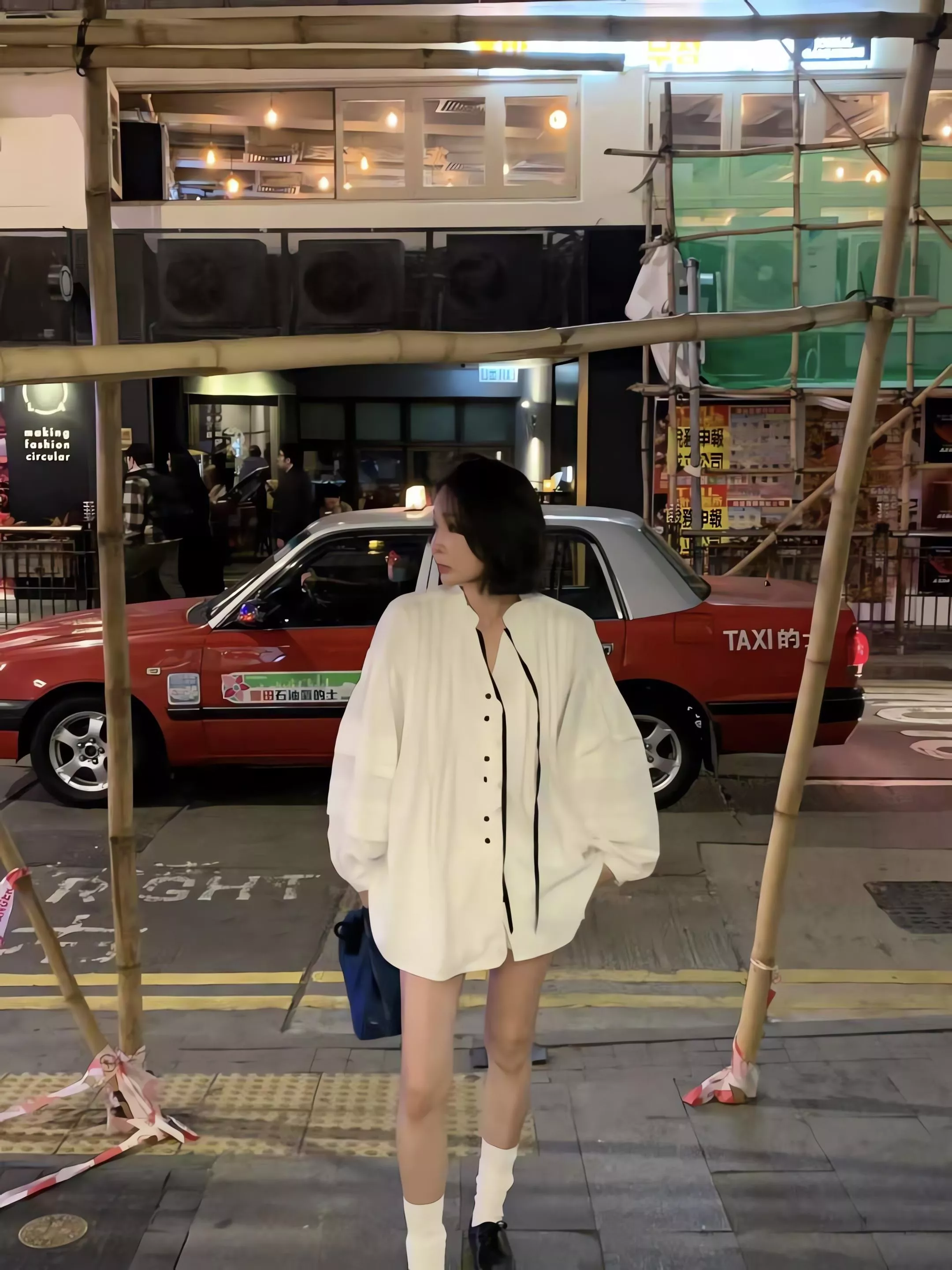 褲腳縮起來的樣子有點可愛,配雙襪子和好走的平底鞋。 不論是在街角買咖啡、安靜地待在書店一角, 還是就這樣穿梭在首爾街頭採購, 這種鬆鬆垮垮卻很有精神的樣子, 就是我們最喜歡的那種舒服 chic 感。