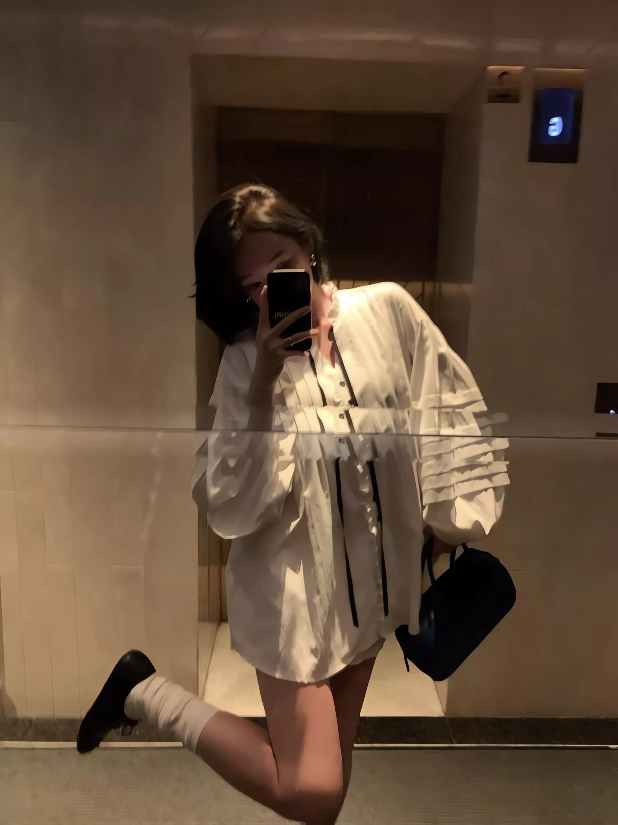 全白的衣服最怕單調,但這件因為有很多褶子,在陽光下會有陰影的層次感,看起來很有質感。