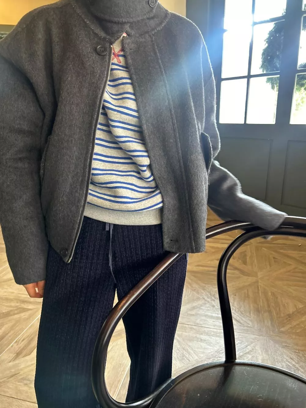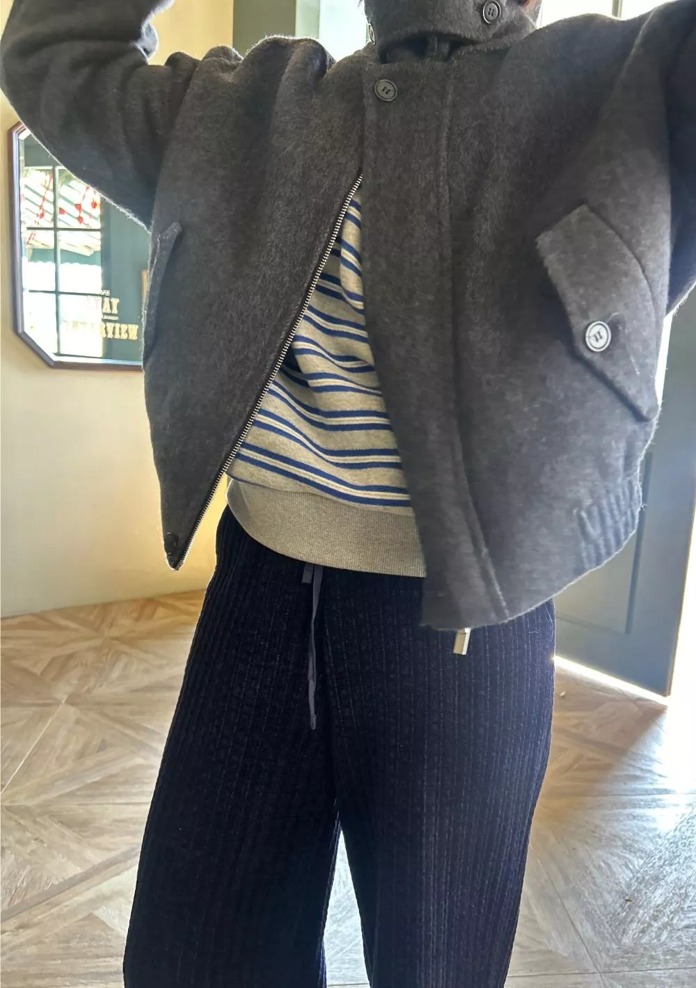 這是一件「掛著看很有個性,穿上身卻意外百搭」的衣服。下擺羅紋縮口寬鬆適中,對身材的包容度極高,甚至連孕媽咪也能輕鬆駕馭那份隨性的帥氣。