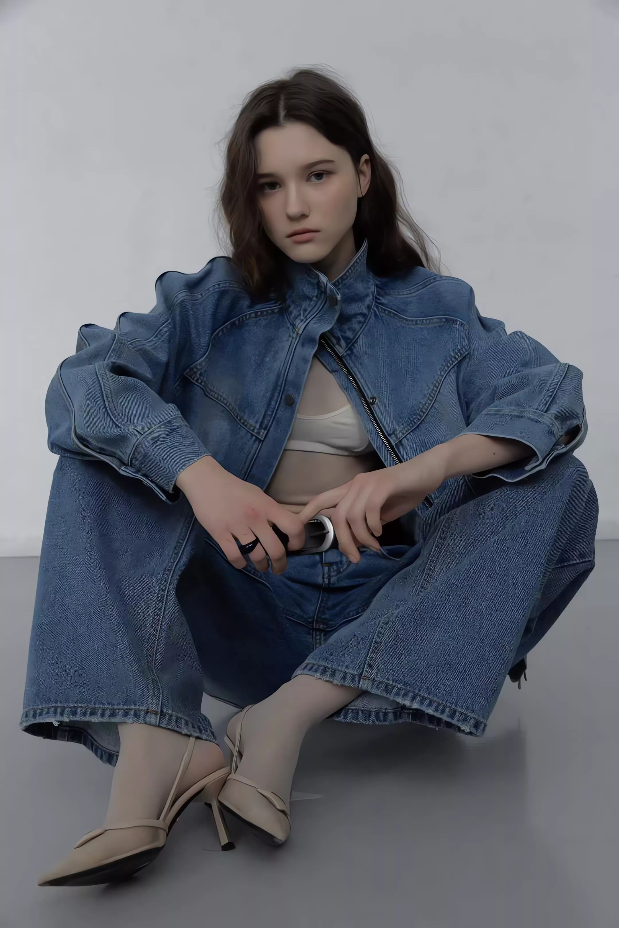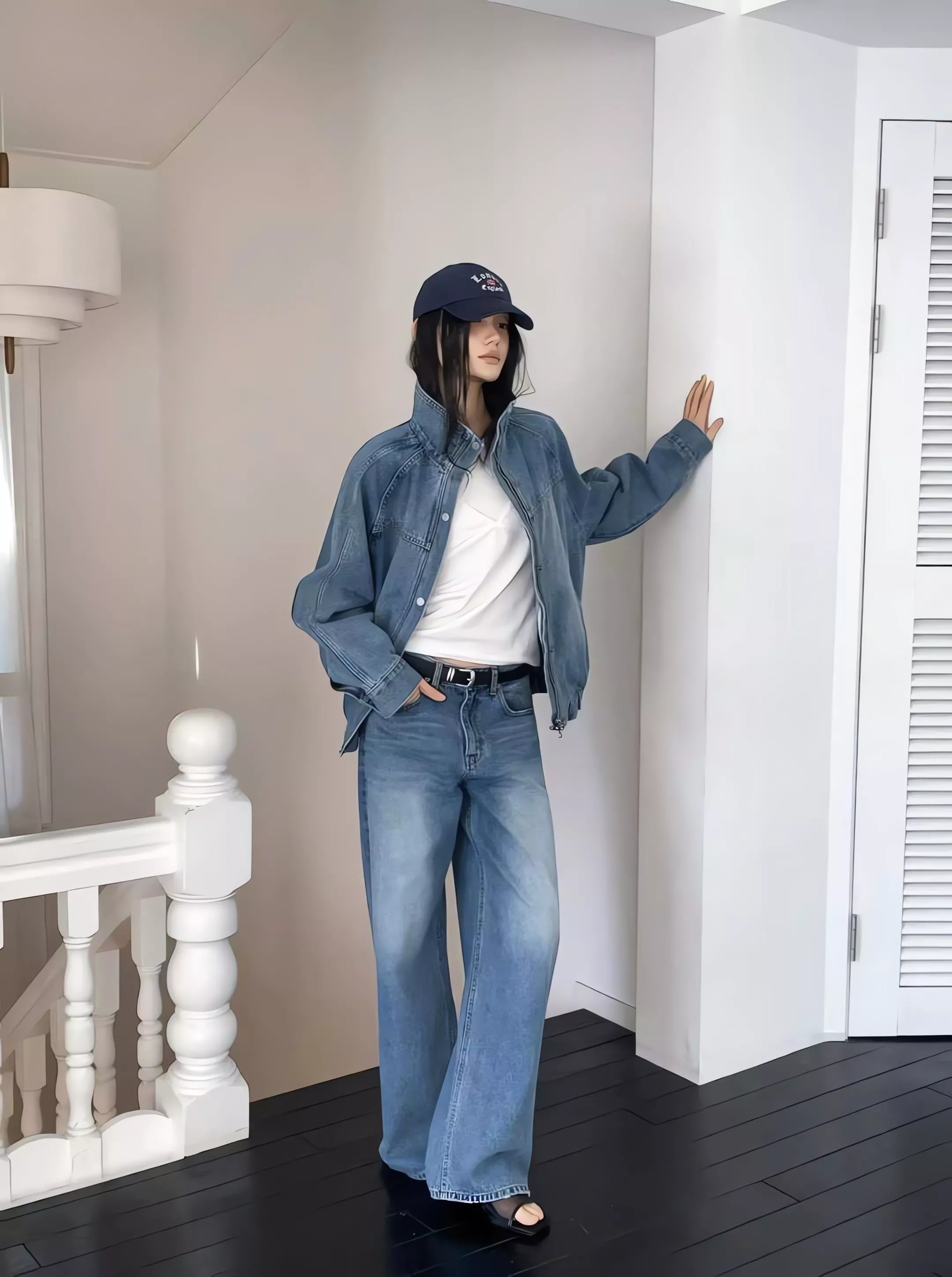 捨棄複雜裝飾,回歸最純粹的直筒剪裁。特別採用的「高腰設計」能有效拉長下半身比例,結合微落地的長度,讓褲管自然順著腿型垂墜,視覺上瞬間增高,打造胸以下全是腿的既視感。