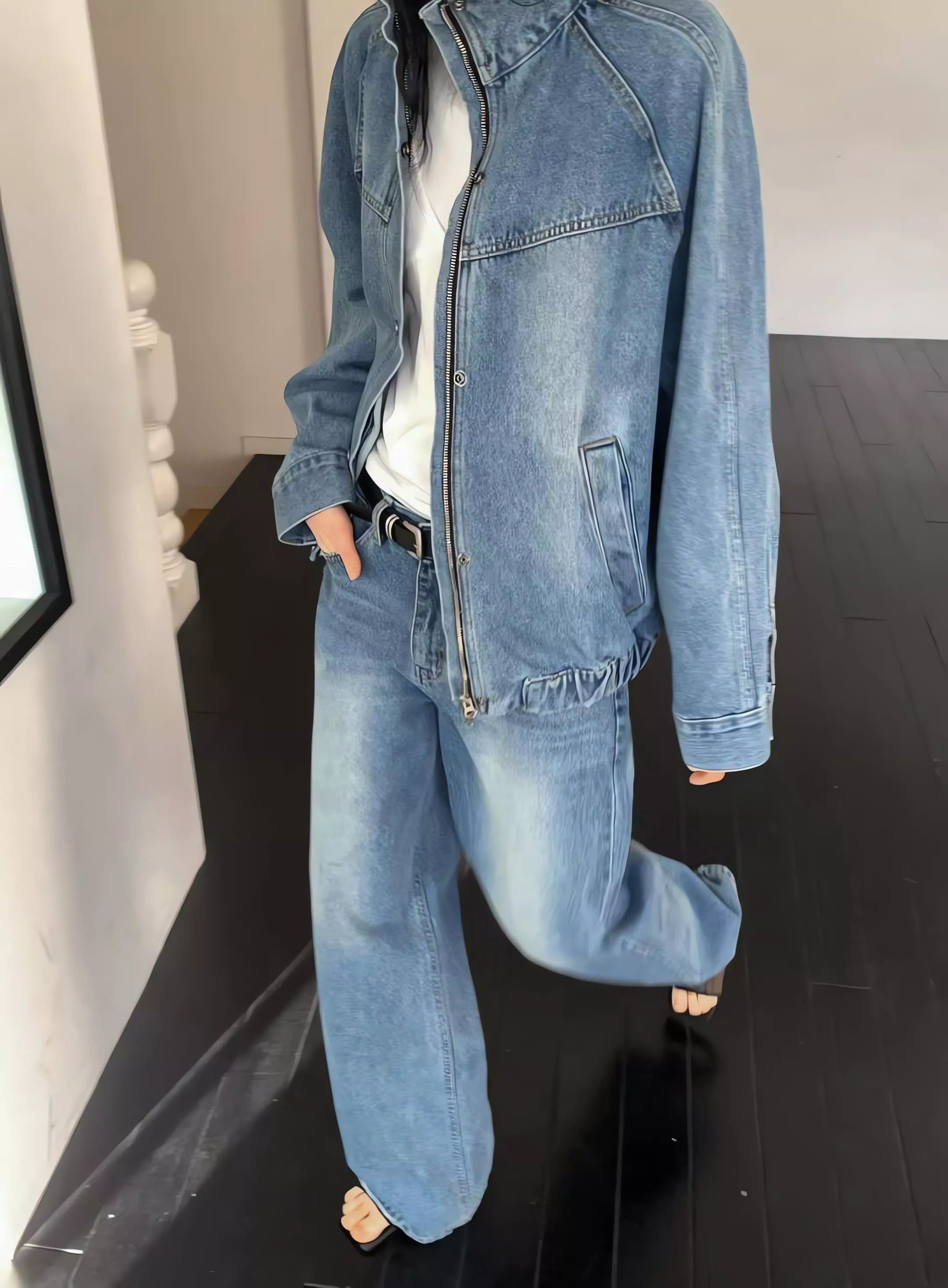 一致性的城市感水洗色澤,讓工裝的粗獷與寬褲的俐落完美融合。成套穿著展現不經意的時髦感,分開搭配更是日常衣櫃裡的百搭神品。