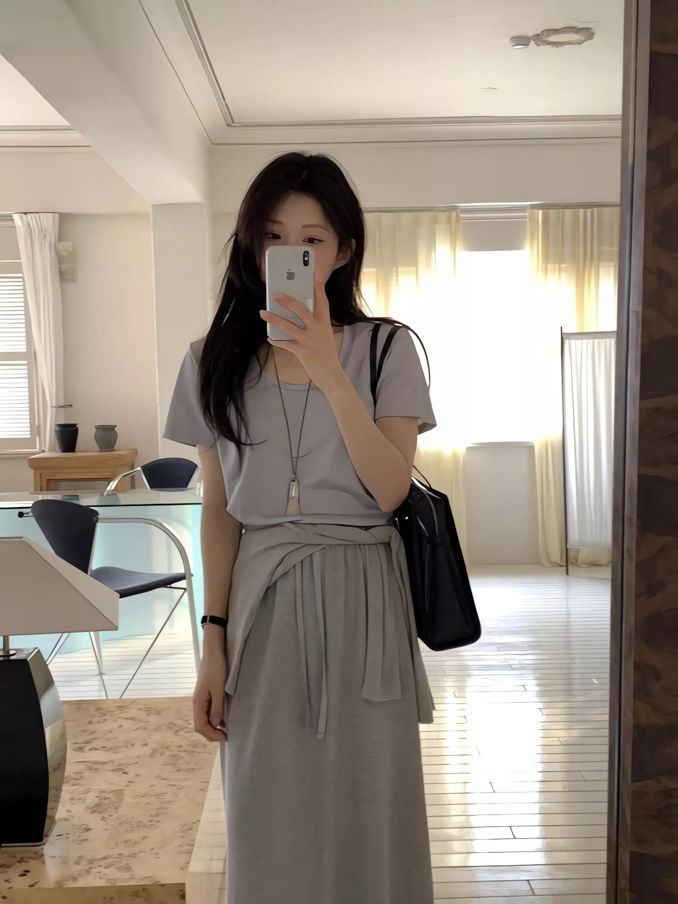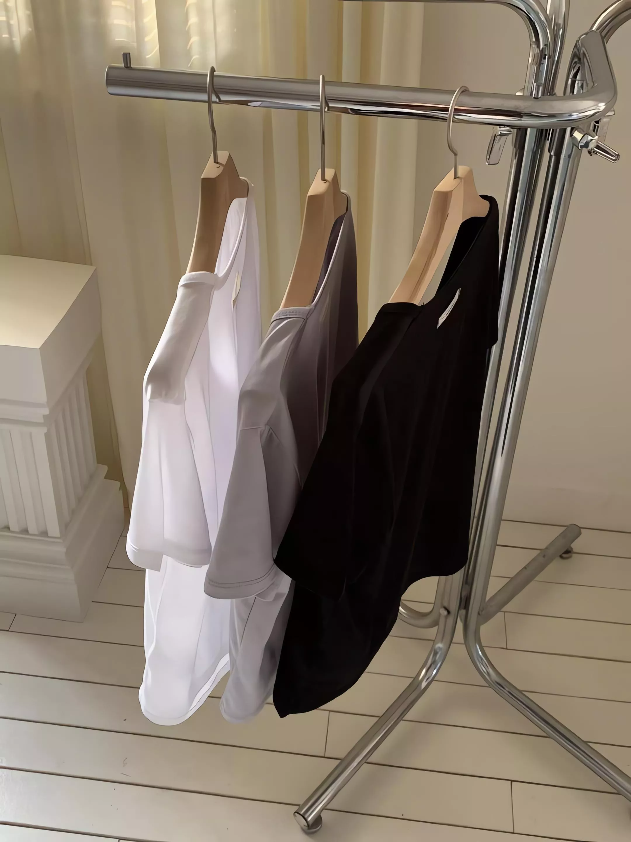版型順著身形自然落下,不會過度貼身,但也不會鬆垮,剛好帶出一點乾淨俐落的線條。領口是簡單的圓領設計,開口不高也不低,日常穿著很剛好。