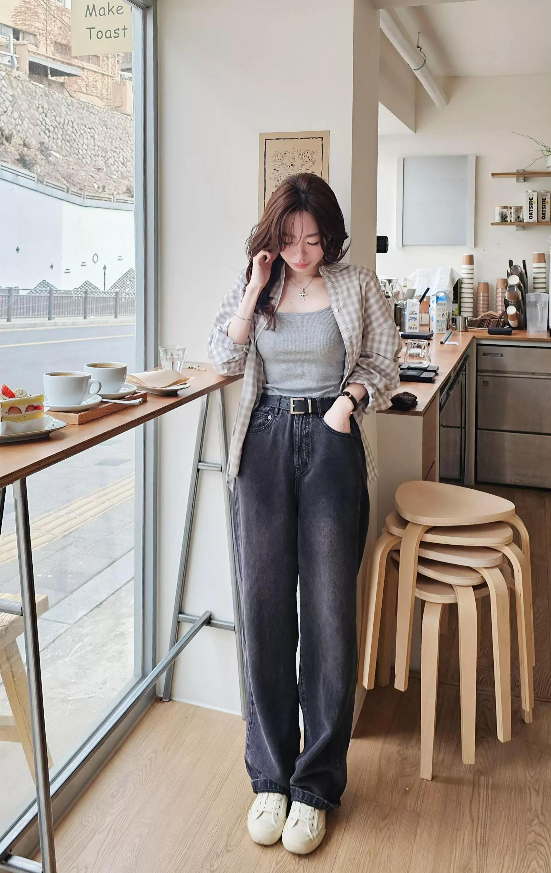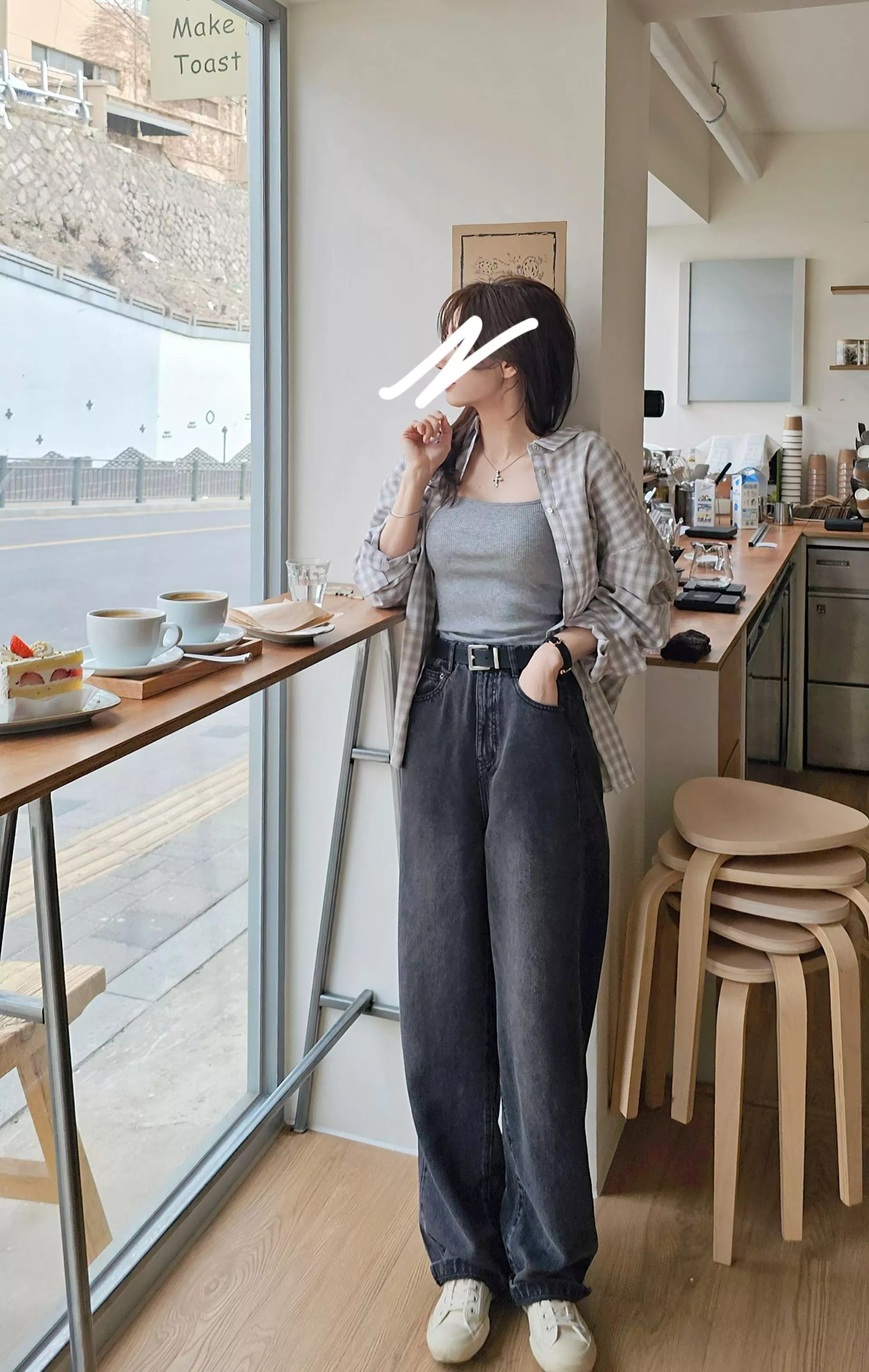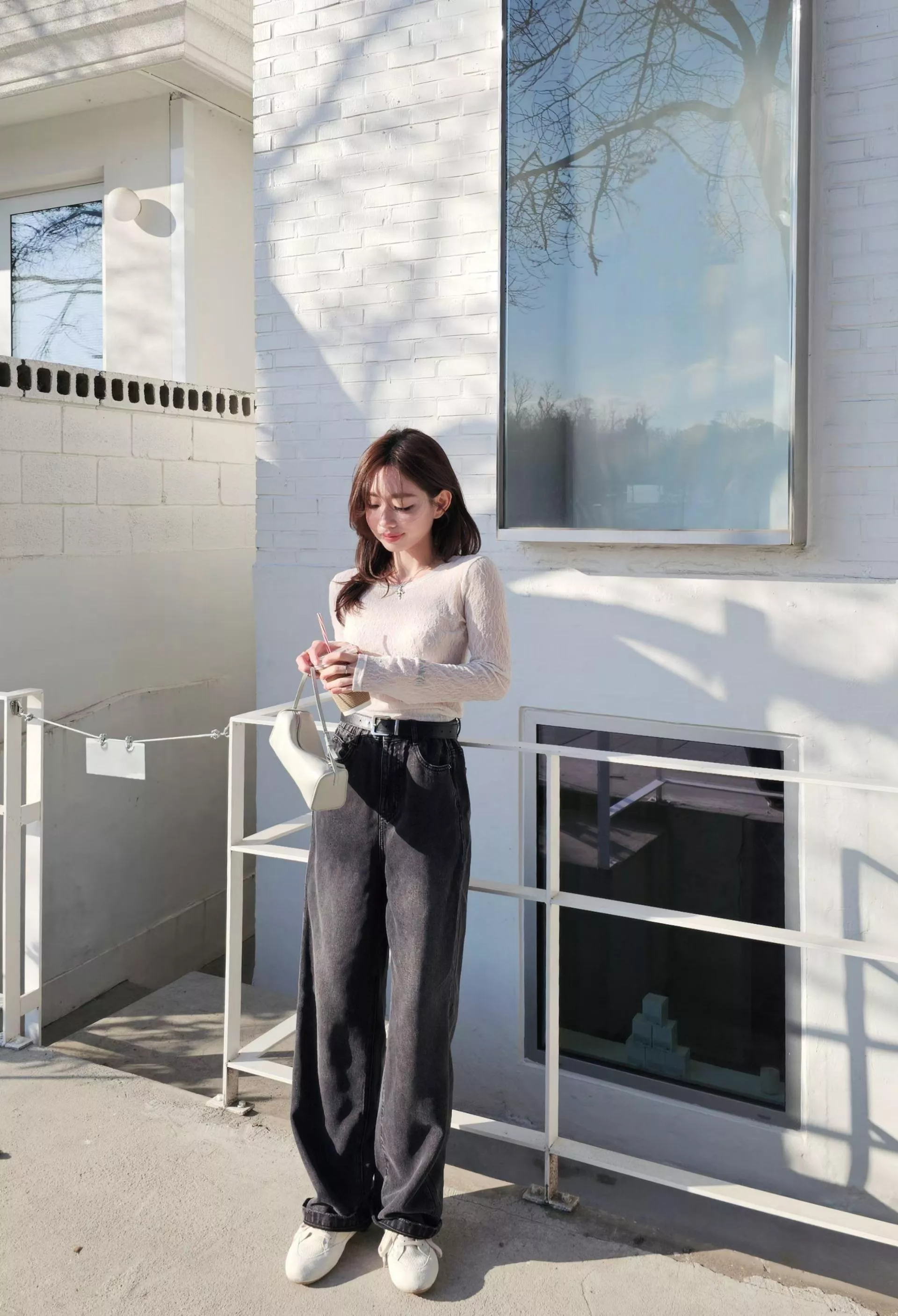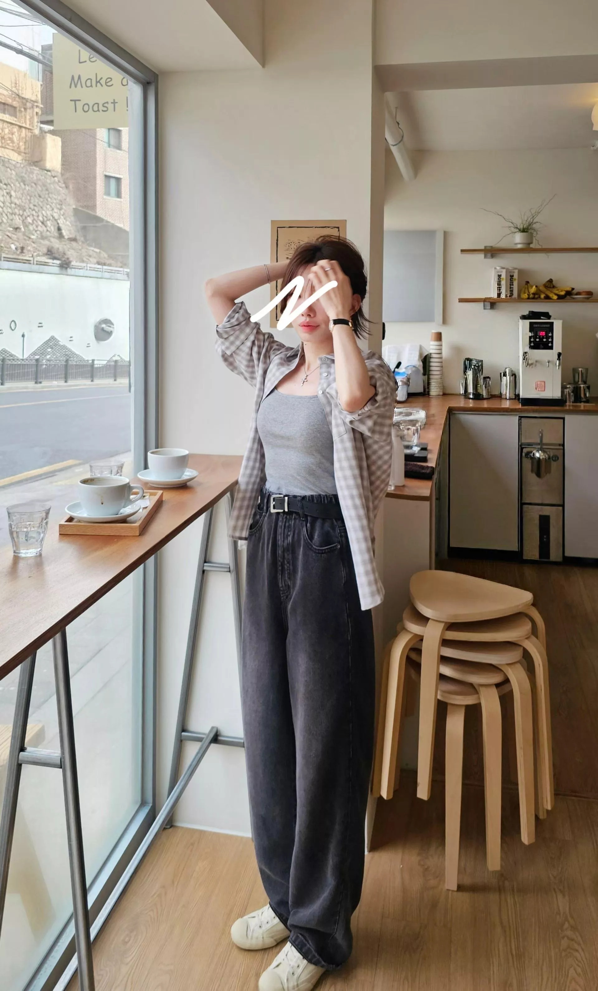 這款尺寸因為做鬆緊腰,所以只有做兩個尺寸,如果想穿照片上歐尼那樣鬆弛感,XS~小M身材選擇S,M~L身材選擇M。歐尼的正常腰圍約22吋,S對她而言有點大,單穿掛在中低腰,也可以加腰帶穿高一點