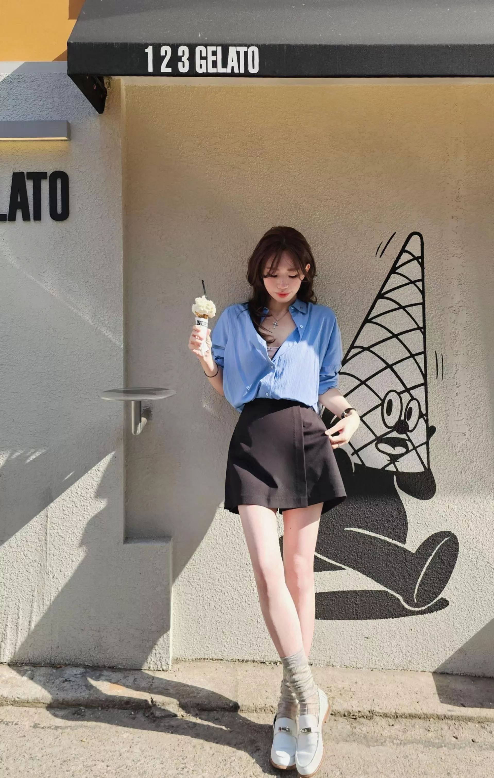 * 極致顯瘦 A 字版型: 微微散開的裙襬讓雙腿視覺上更顯纖細修長,隨意搭件罩衫或 T-shirt 就是不費力的時髦。