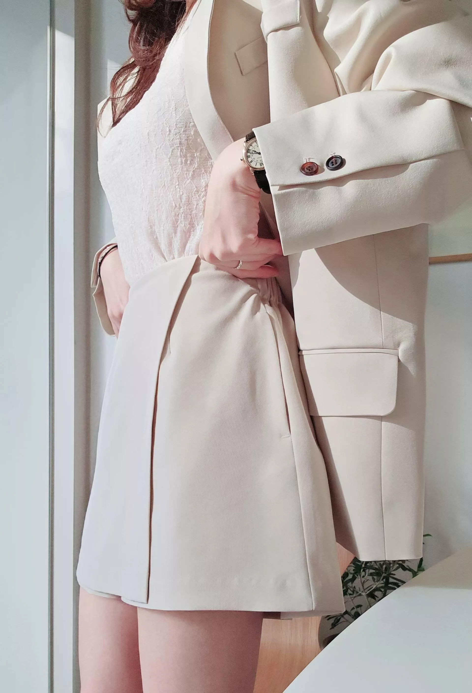 * 正面優雅、背面俐落: 正面是一片裙樣式,完美修飾大腿根部;背面則是俐落的西裝短褲,不用擔心走光,活動自如。