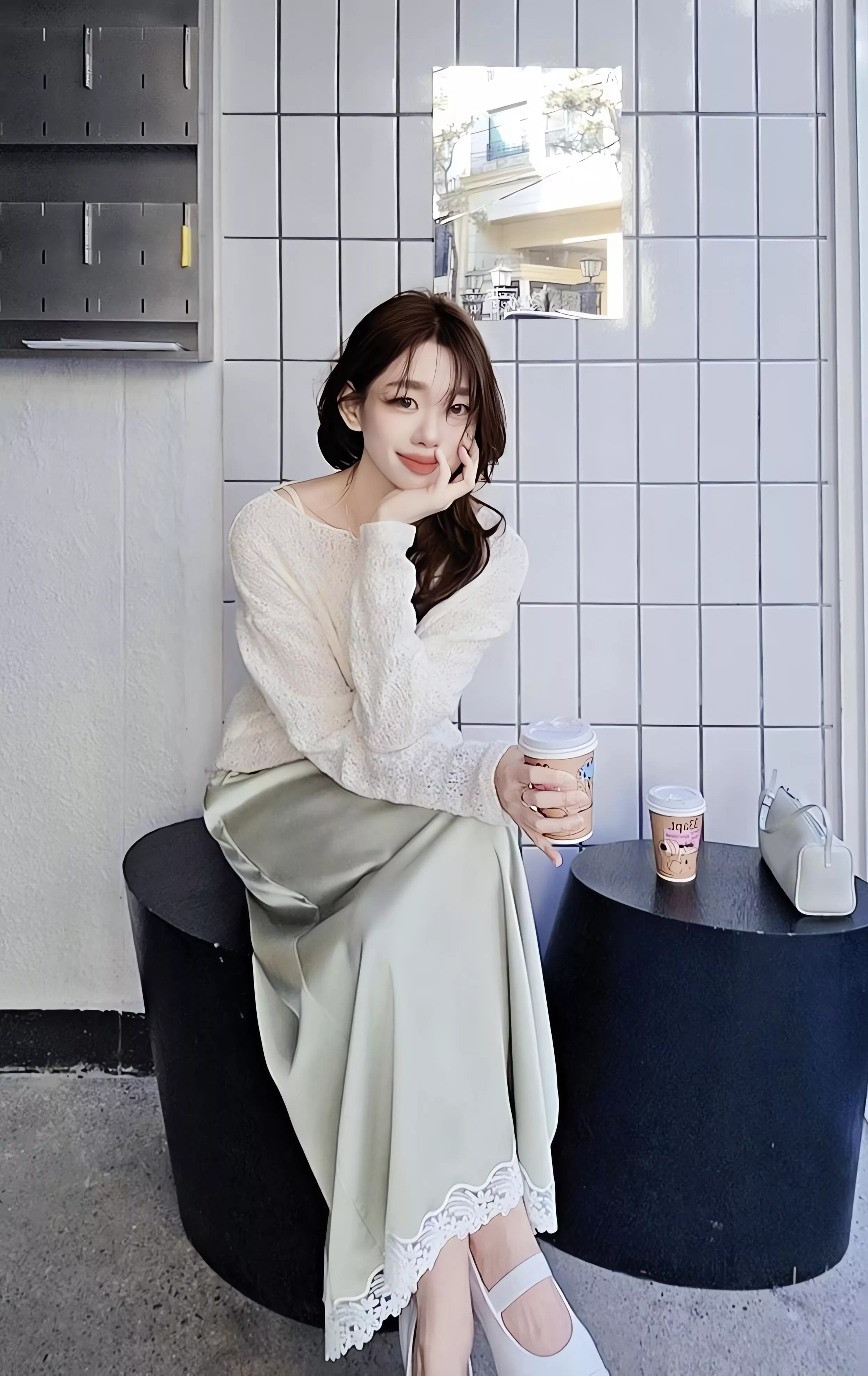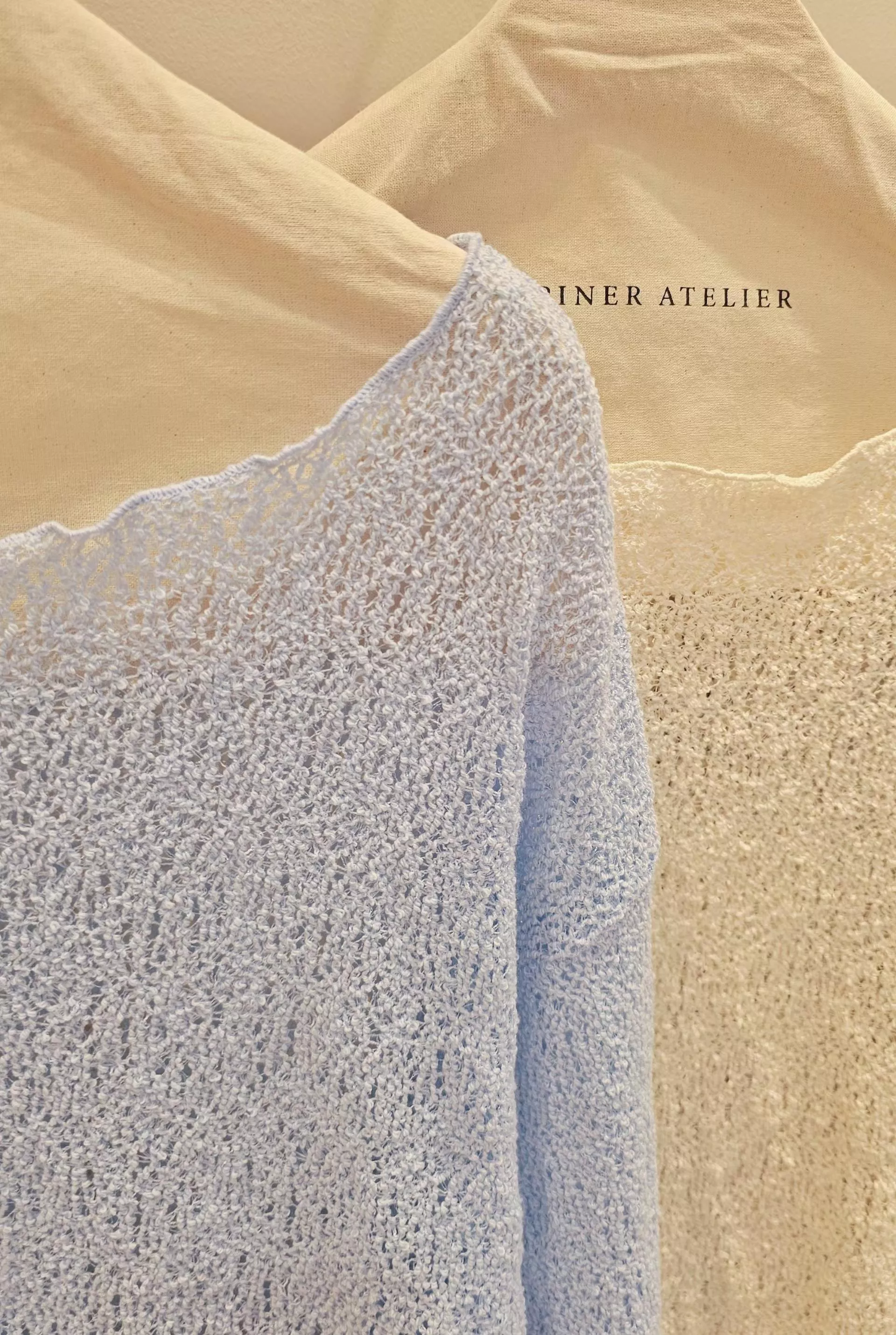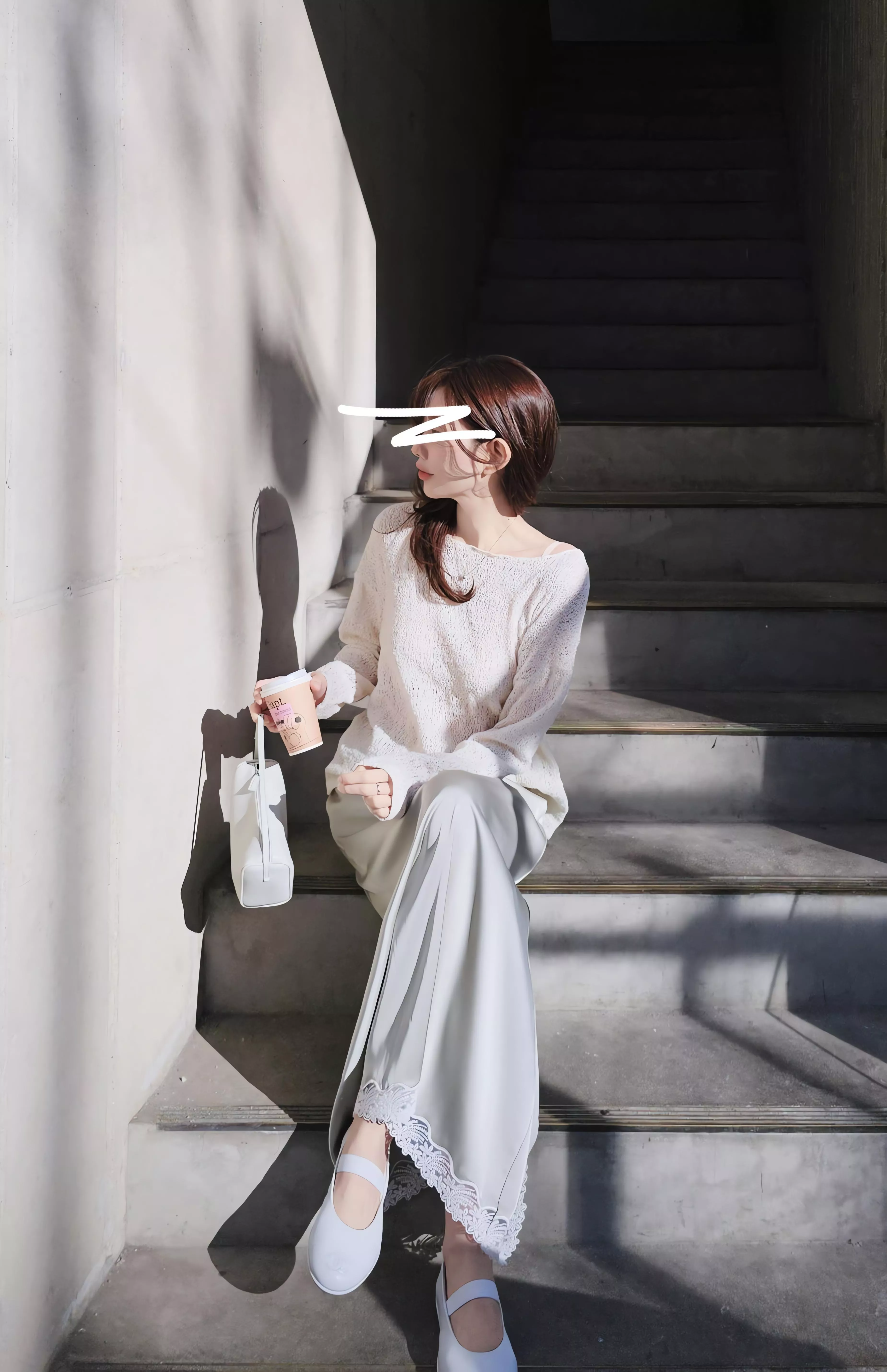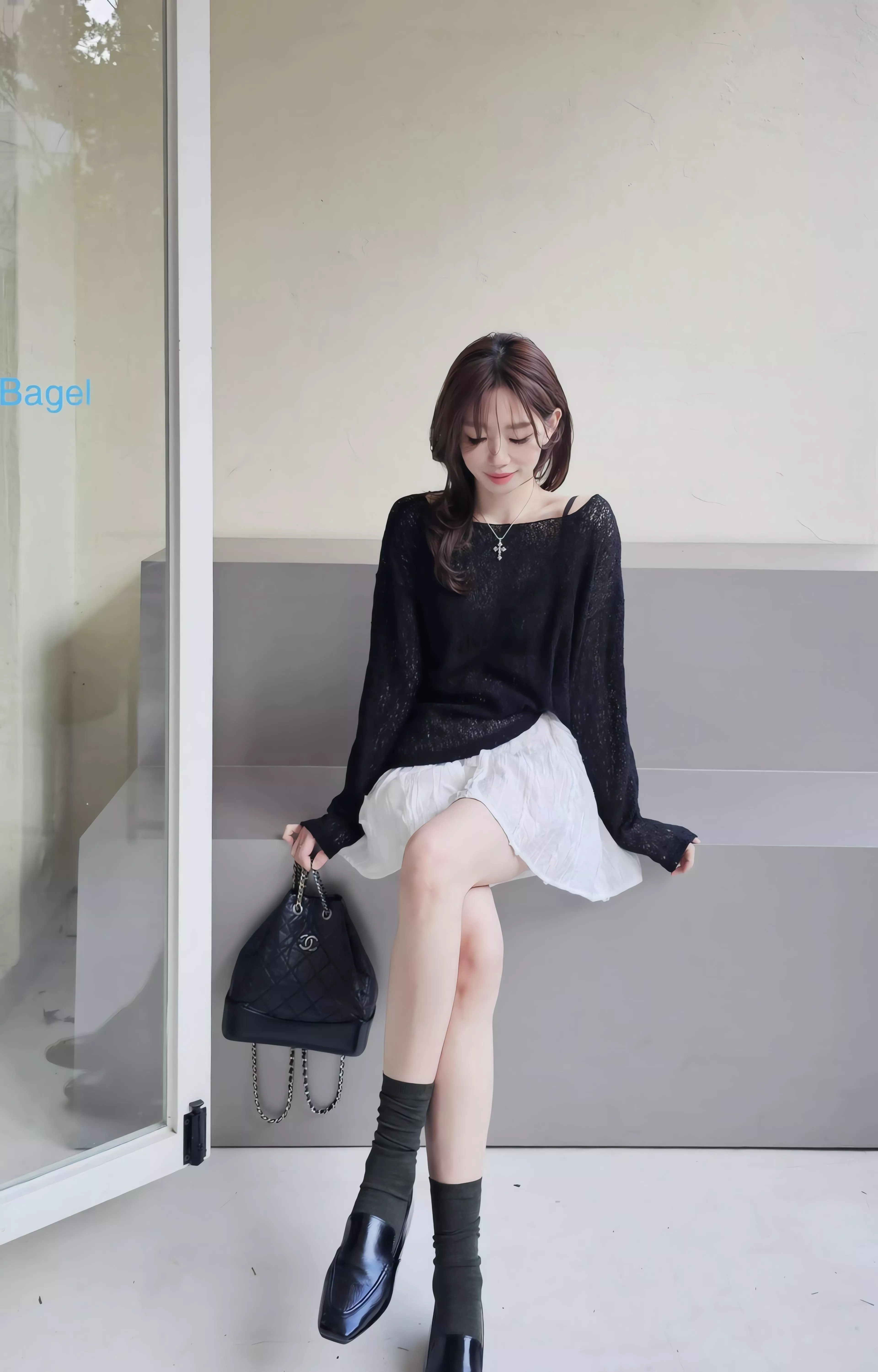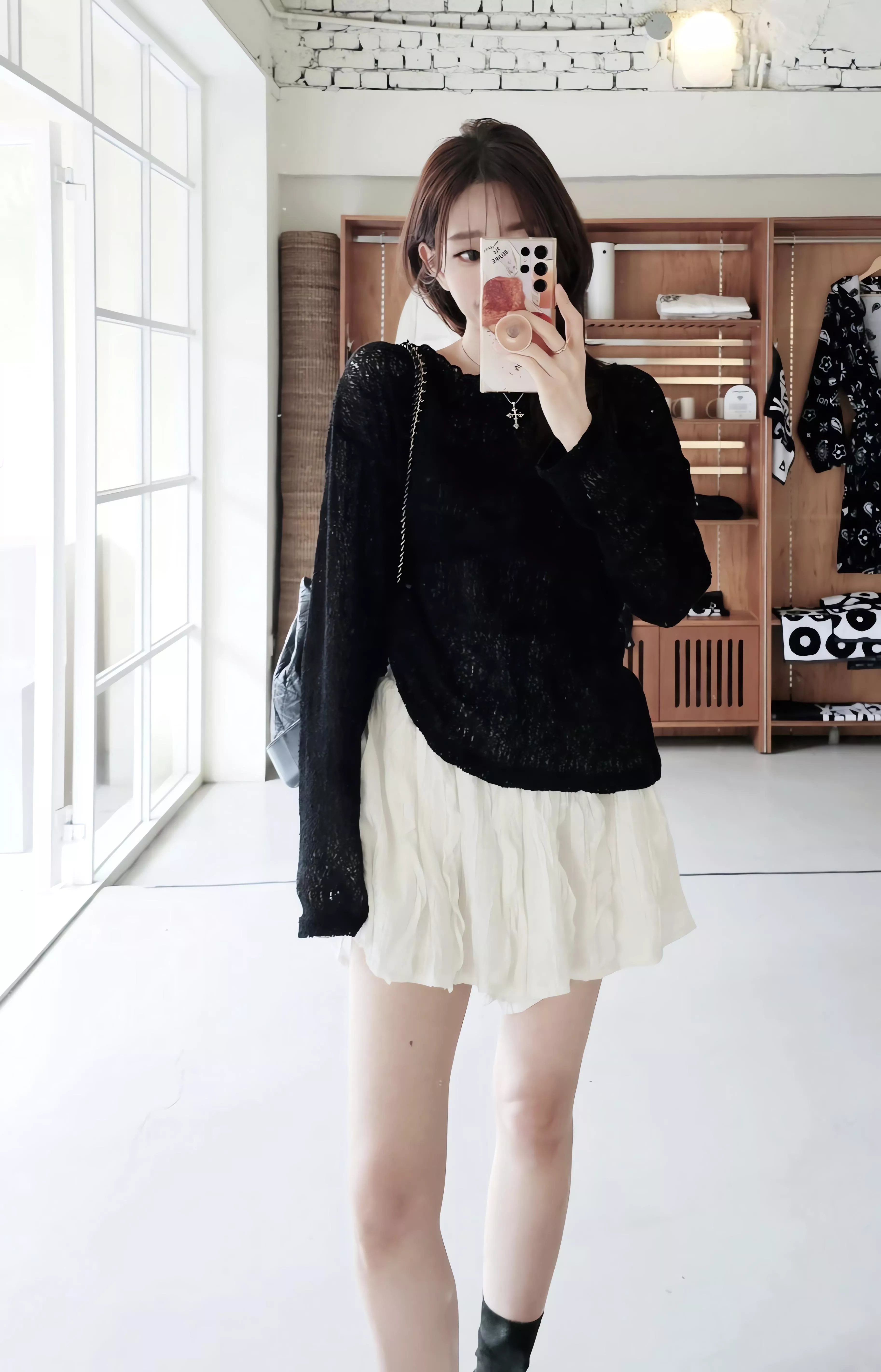 舒適鬆弛感兼具氣質的一款,單穿或是當外罩式都可以,領邊是寬鬆的木耳邊,露出美美的鎖骨線條~🥰🍦 這款織紋很特別的面料,輕盈柔軟舒適親膚,鏤空的效果不會太大,照片中歐尼都是穿一般內衣單穿👌✌️