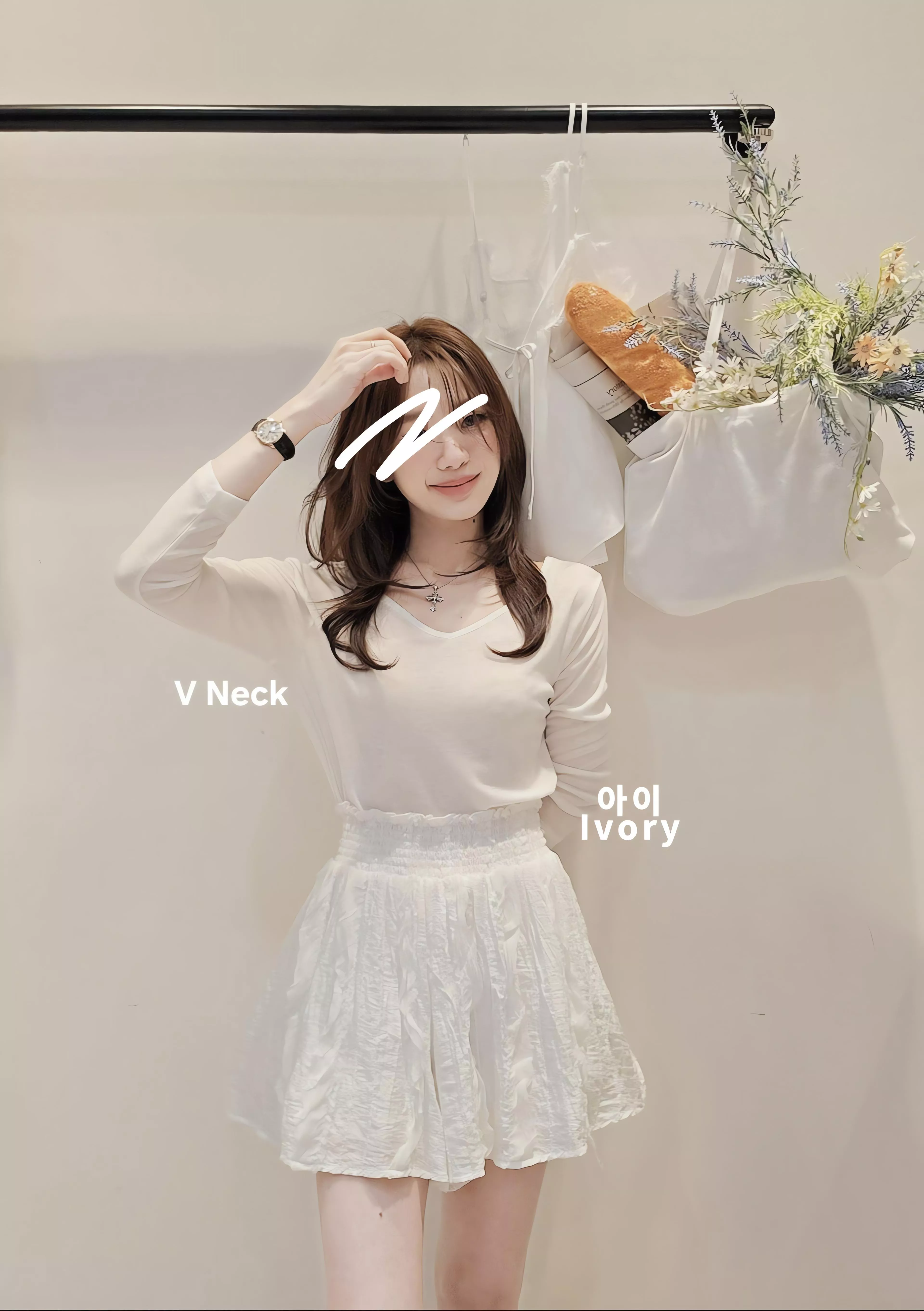 領口做成雙面設計,圓領跟V領可以自由切換,不同穿法其實就像兩件上衣。