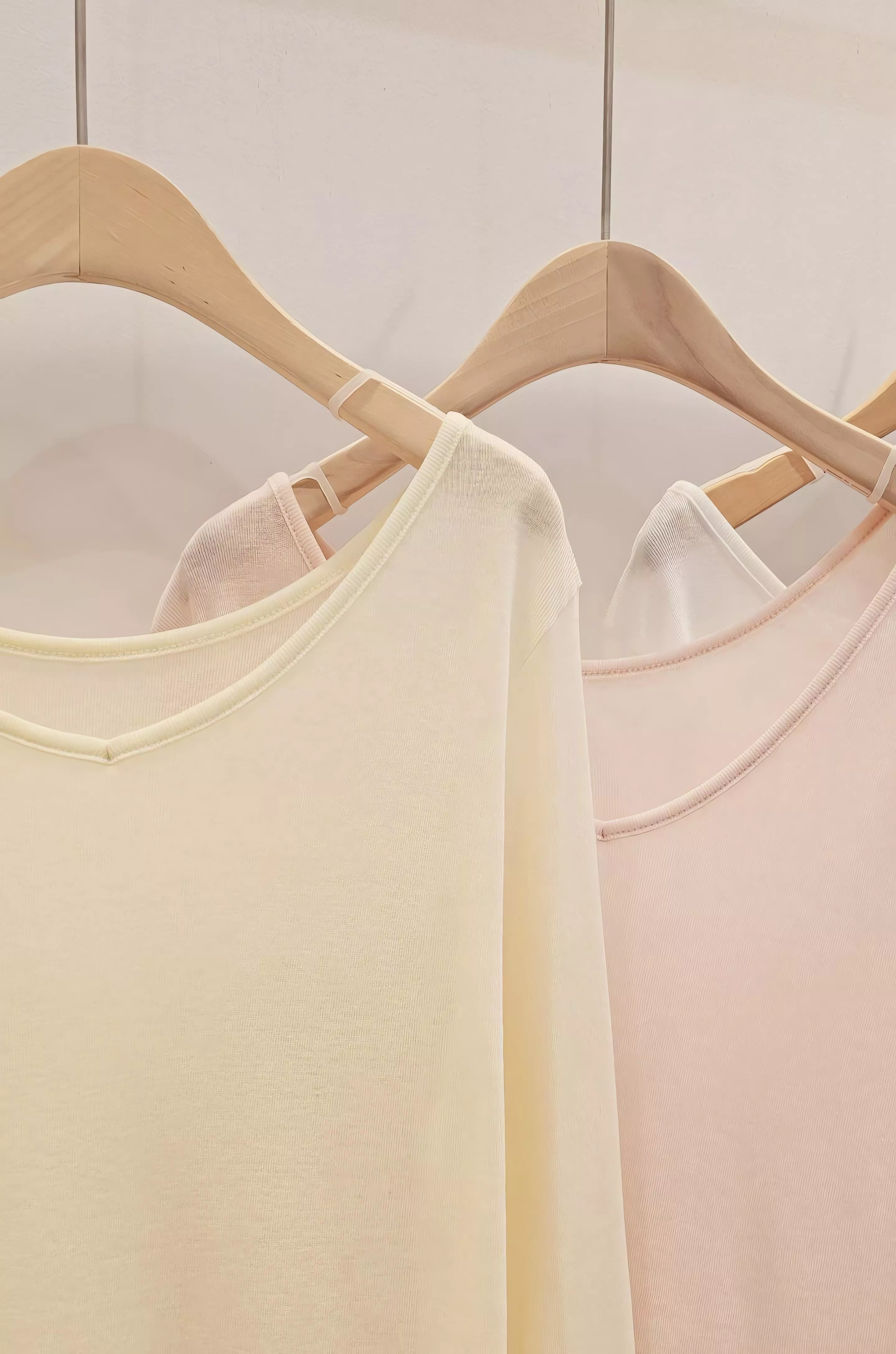 版型是順順貼著身形的修身剪裁,但不會緊,單穿就很好看,也很適合當內搭。
