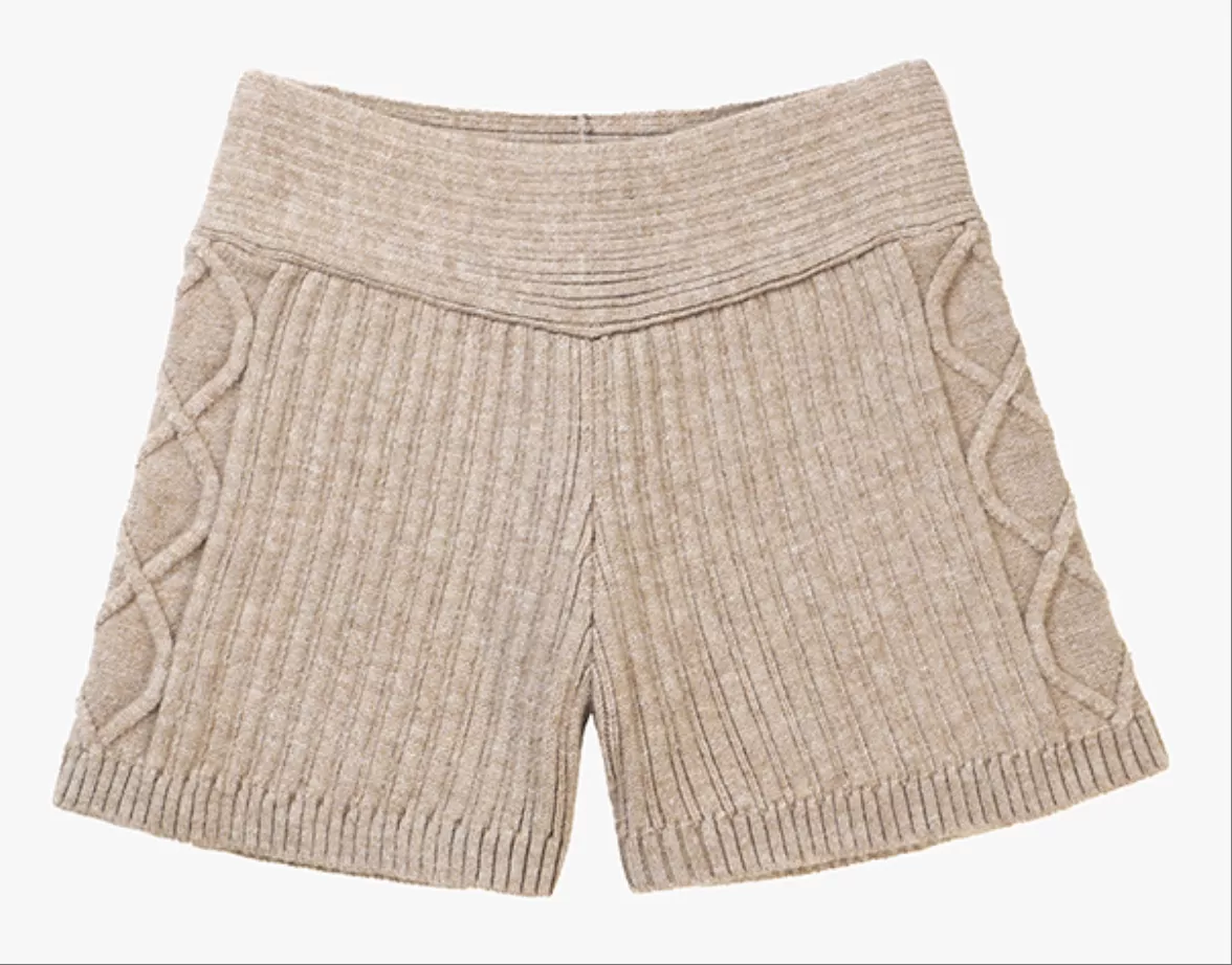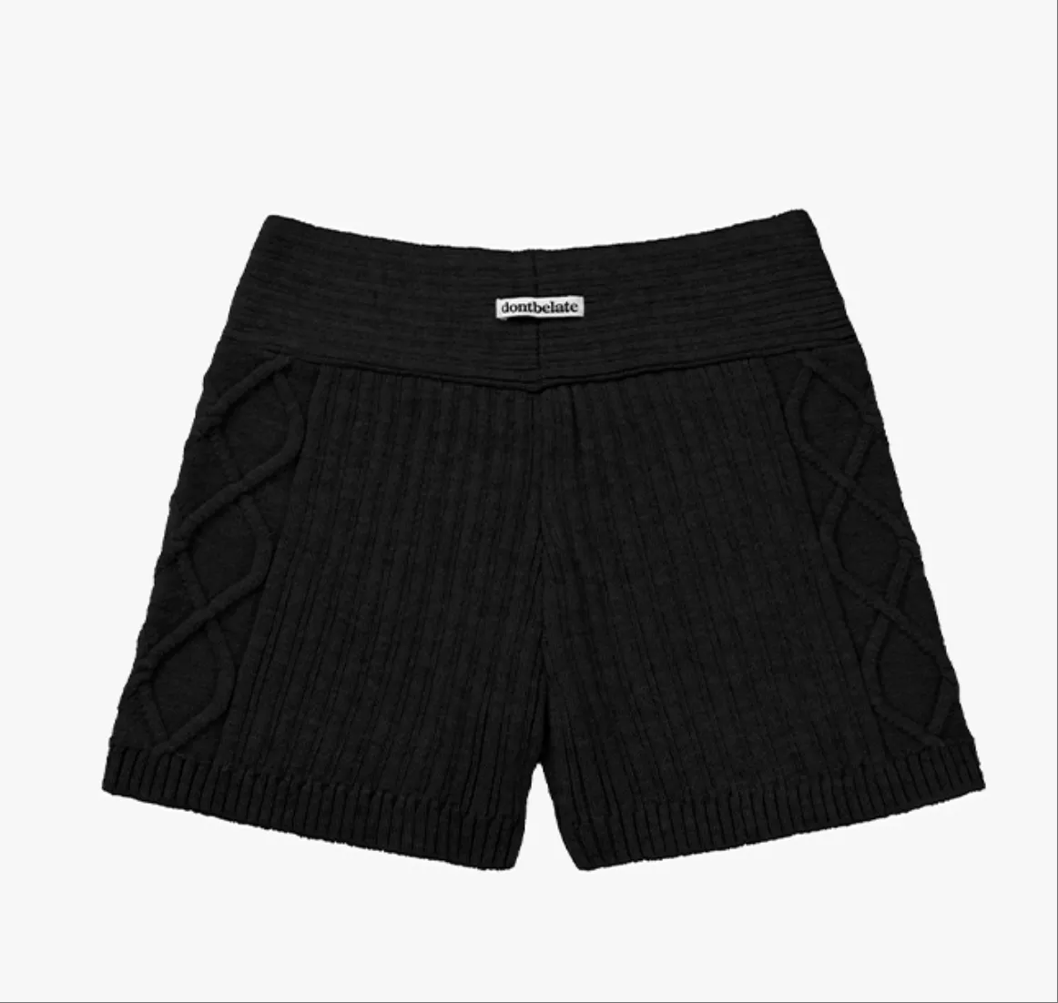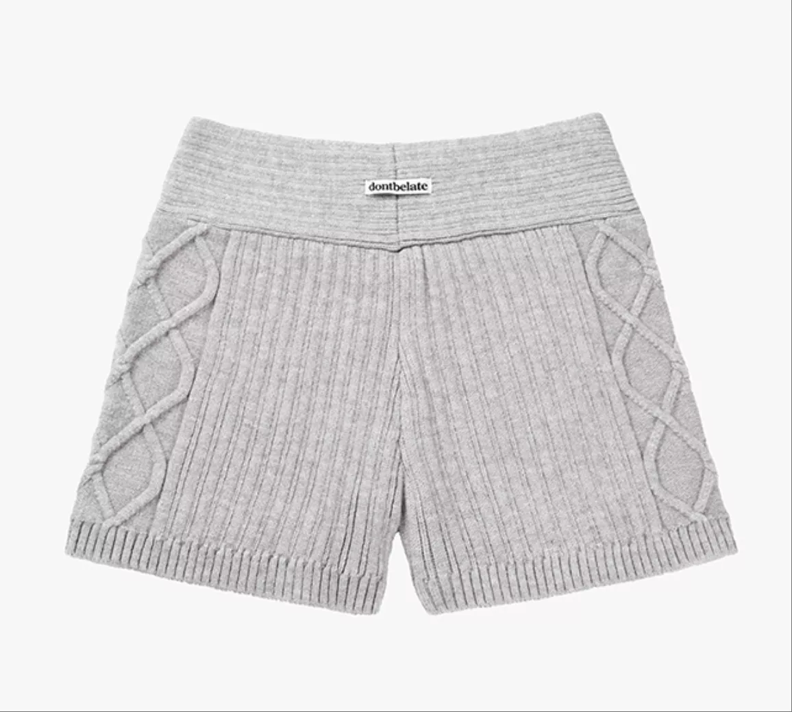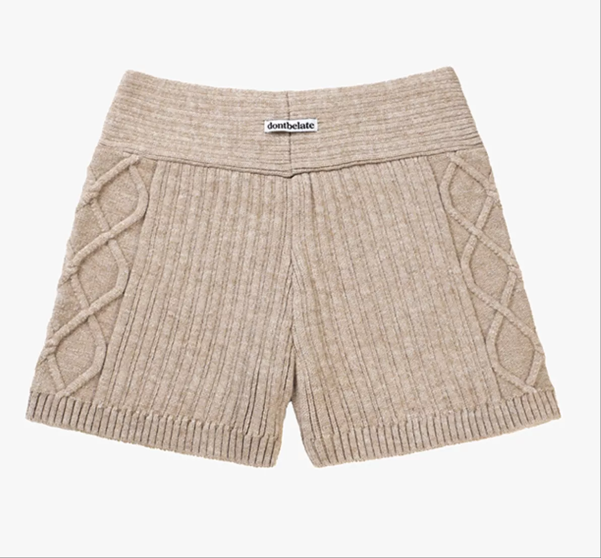 DONTBELATE 柔軟麻花針織短褲 鬆緊腰針織短褲