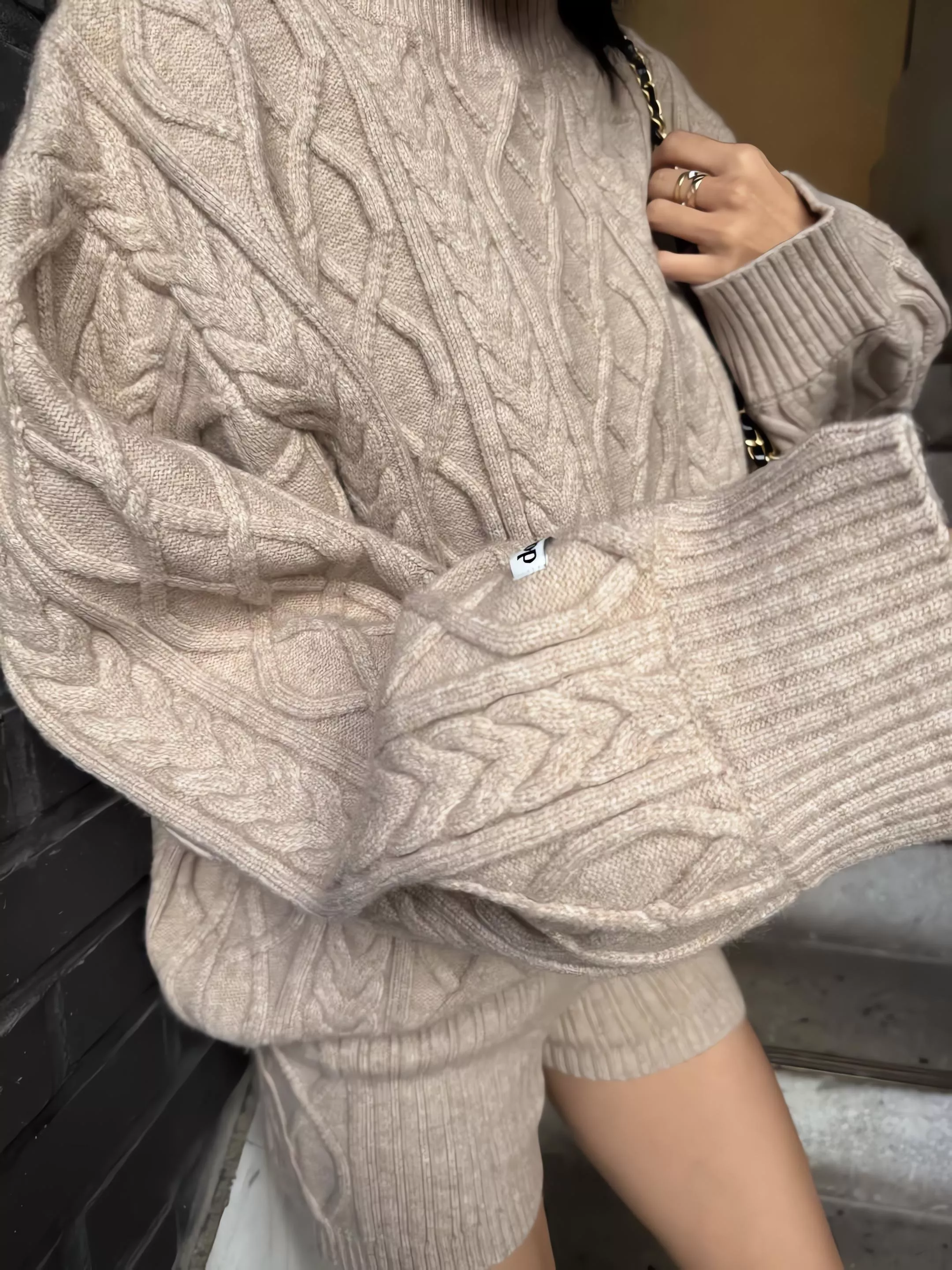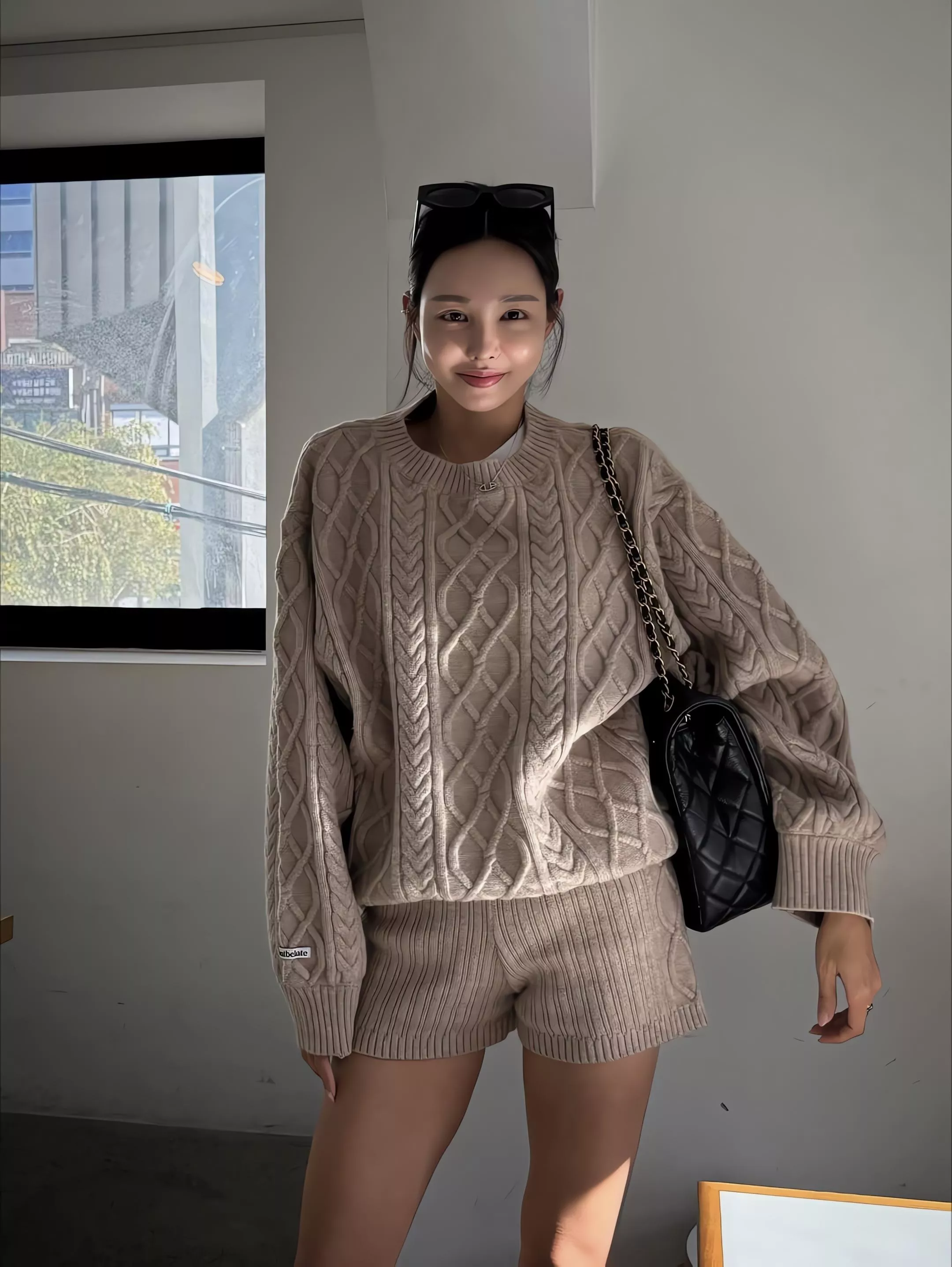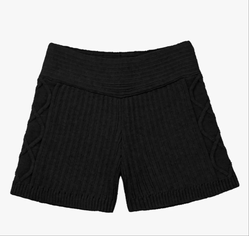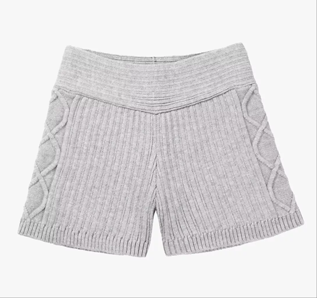 DONTBELATE 柔軟麻花針織短褲 鬆緊腰針織短褲