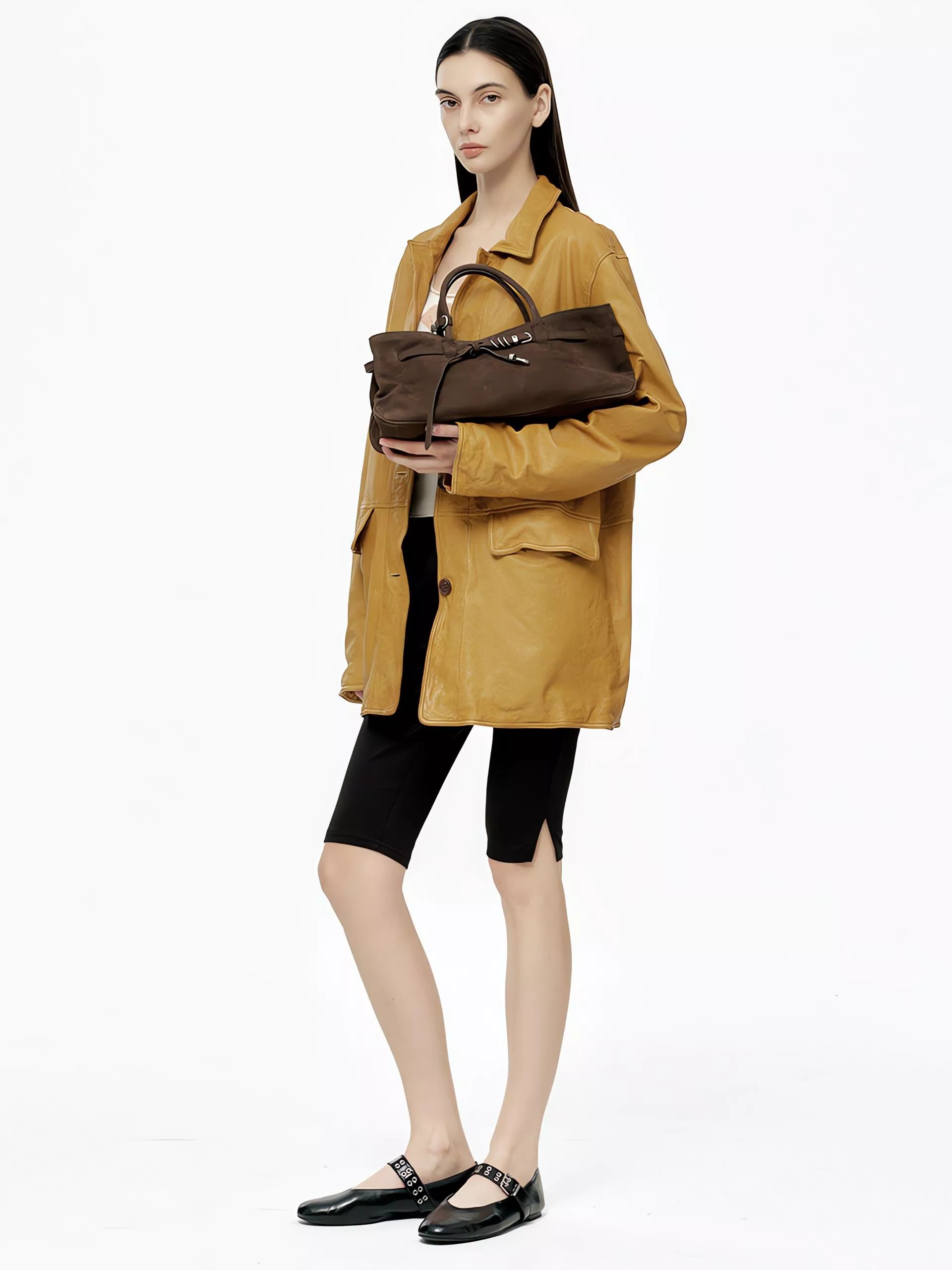 Margesherwood 巧克力棕霧感皮革|Grandma Used Bag 復古托特