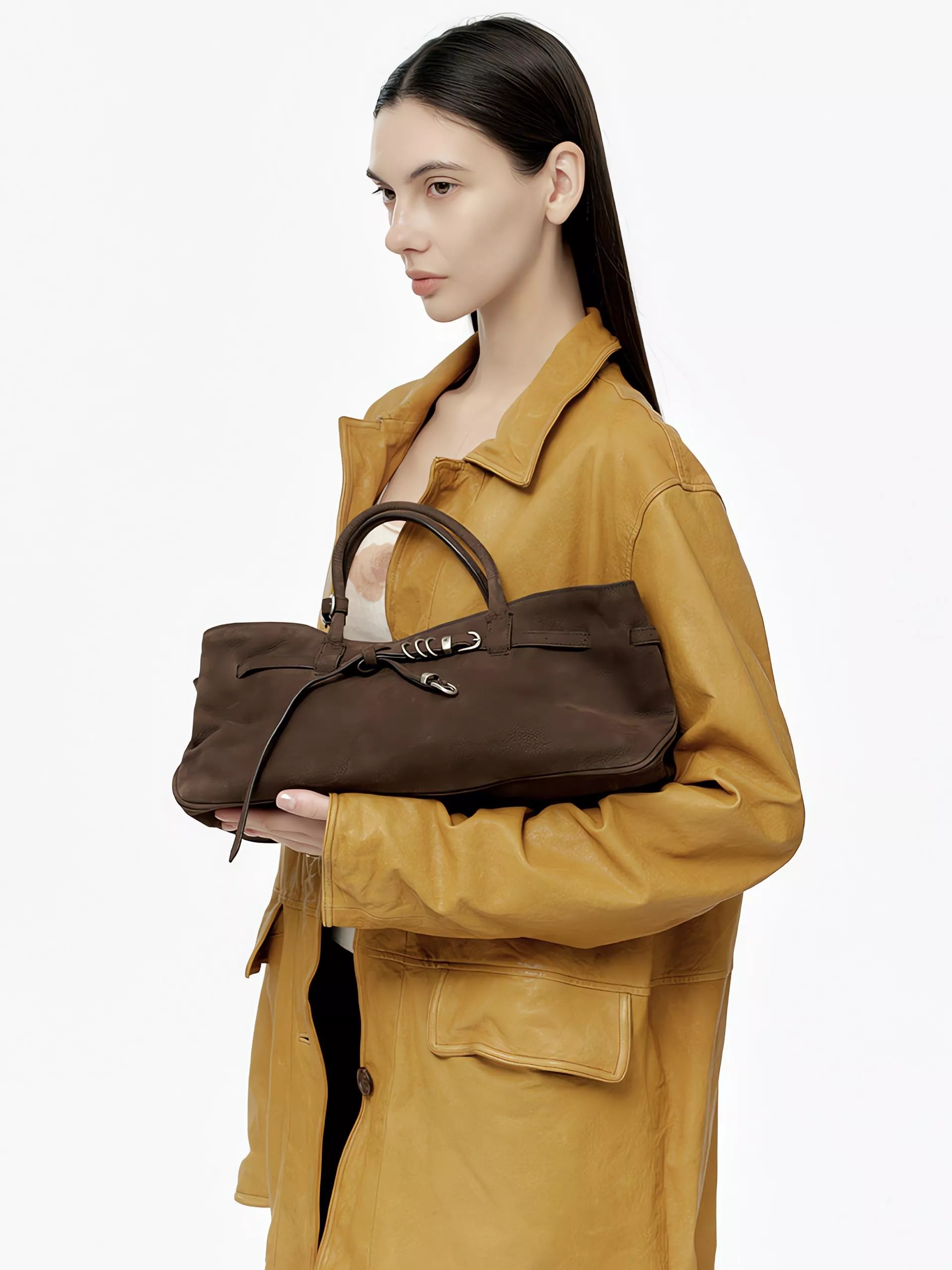 GRANDMA USED BAG 用拉長的橫型比例與綁帶金屬細節,營造復古而隨性的氛圍。