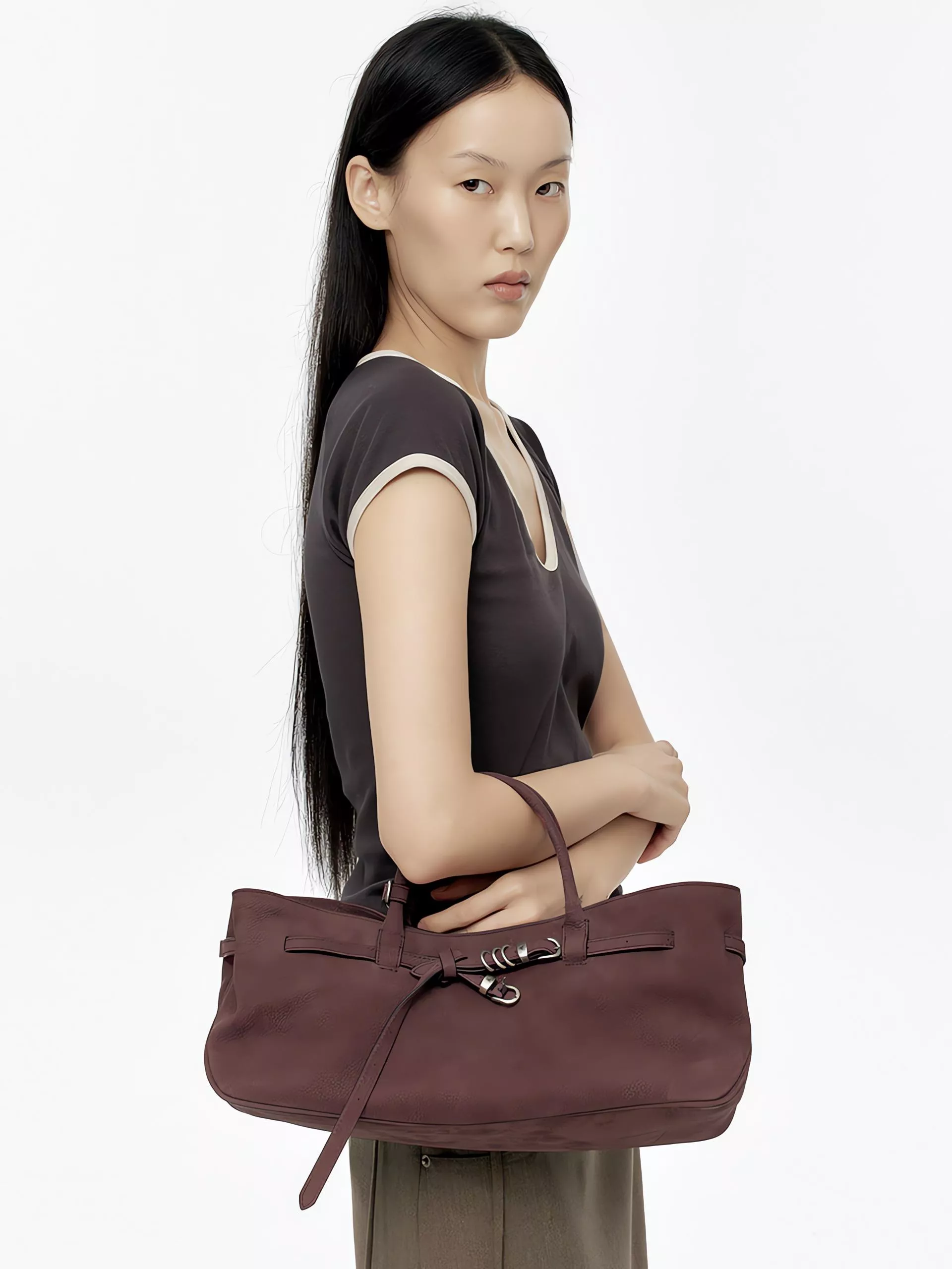 GRANDMA USED BAG 用拉長的橫型比例與綁帶金屬細節,營造復古而隨性的氛圍。