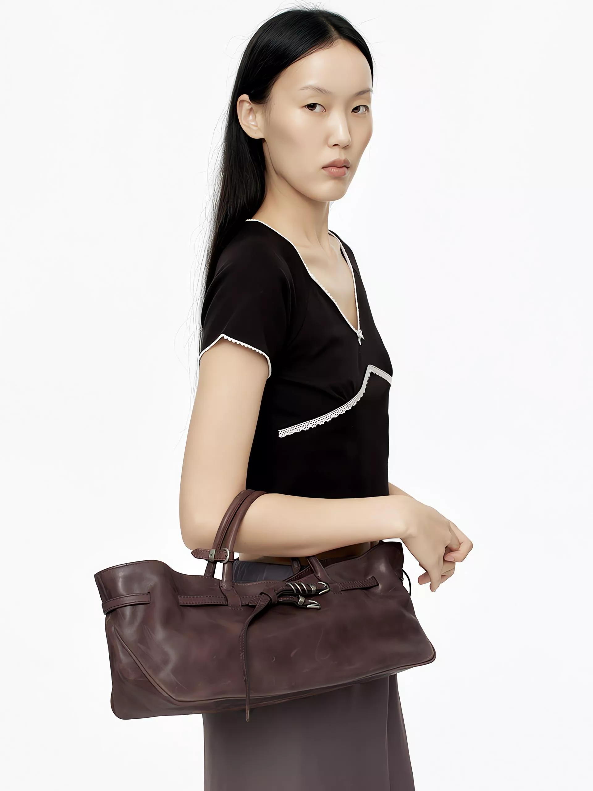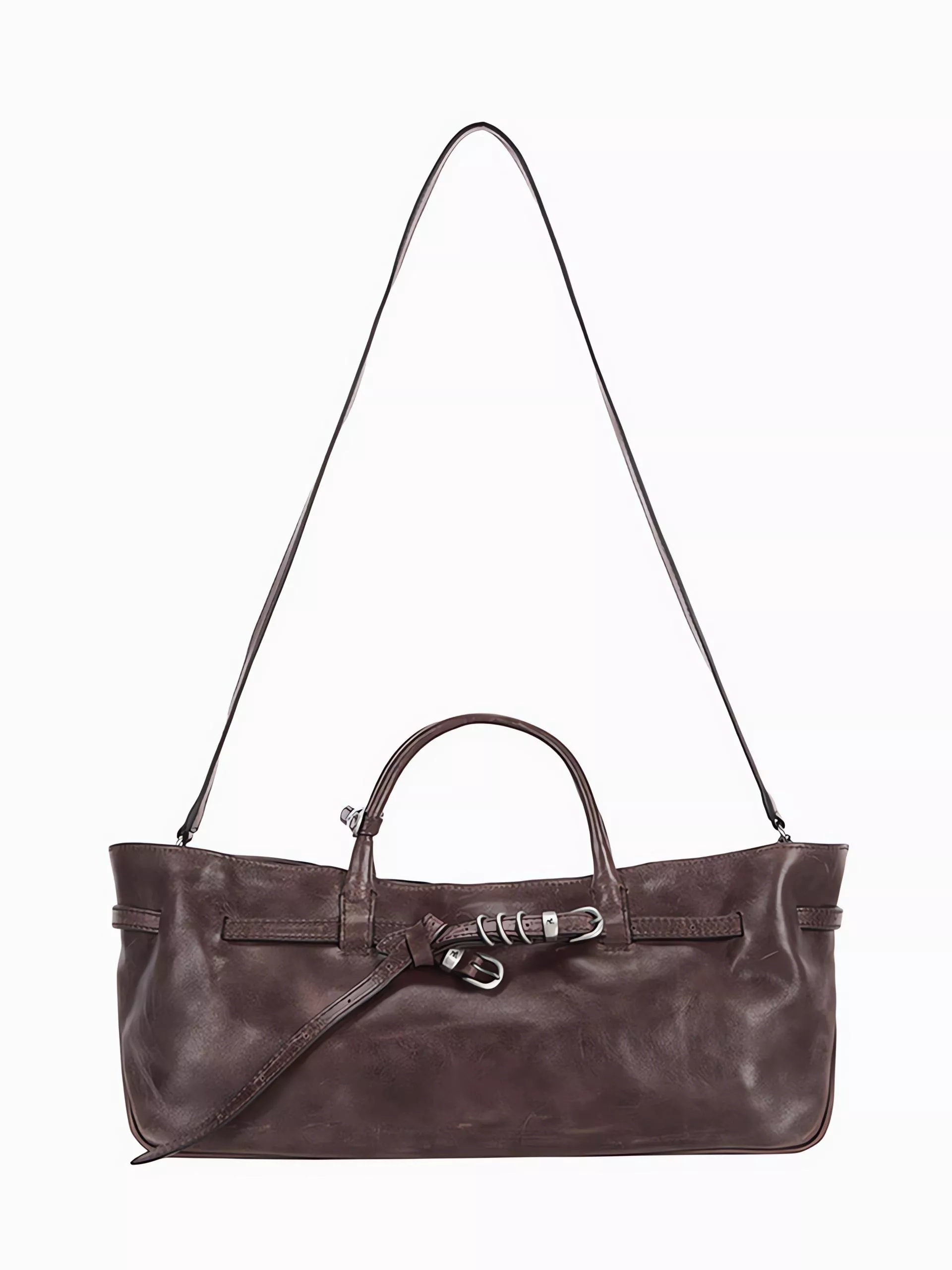 GRANDMA USED BAG 用拉長的橫型比例與綁帶金屬細節,營造復古而隨性的氛圍。
